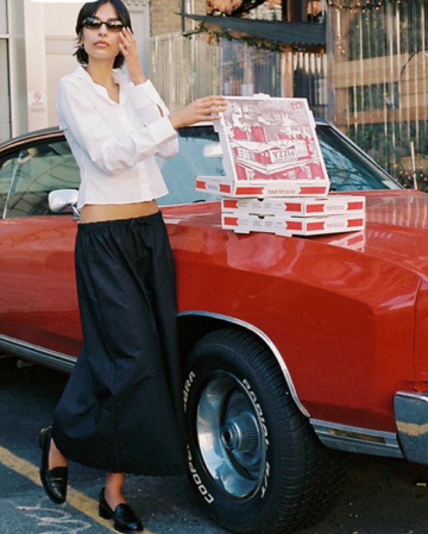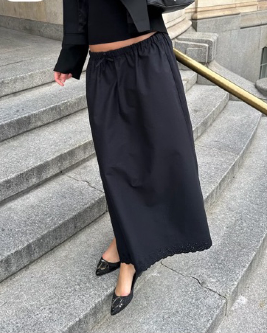 Djerf Ave breezy black midi skirt. Elastic waist band. Runs a little big and sits more low waisted, could fit xxs/xs/s
