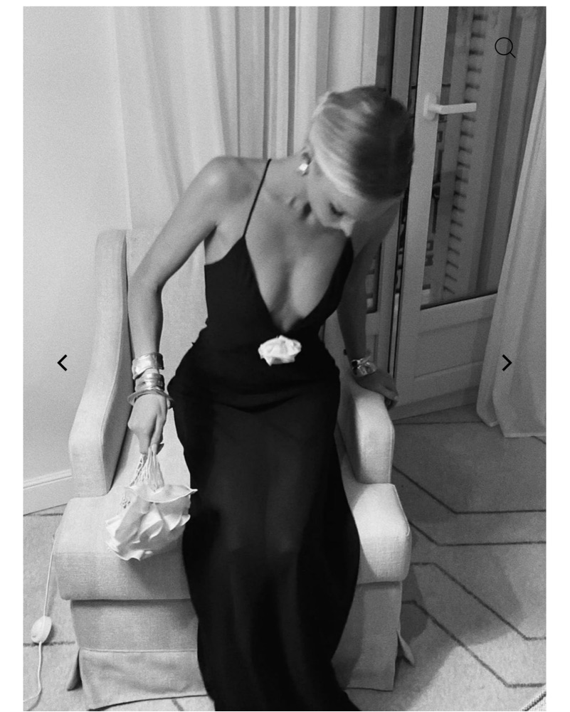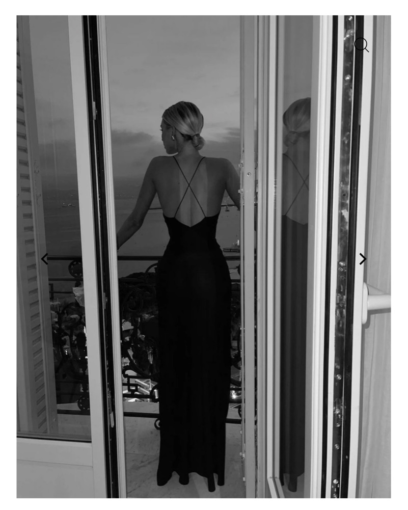 This striking black maxi dress is perfect for a formal event. The deep V-neckline and flowing silhouette create a glamorous look.