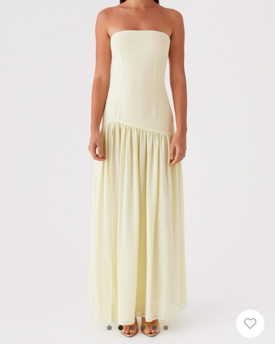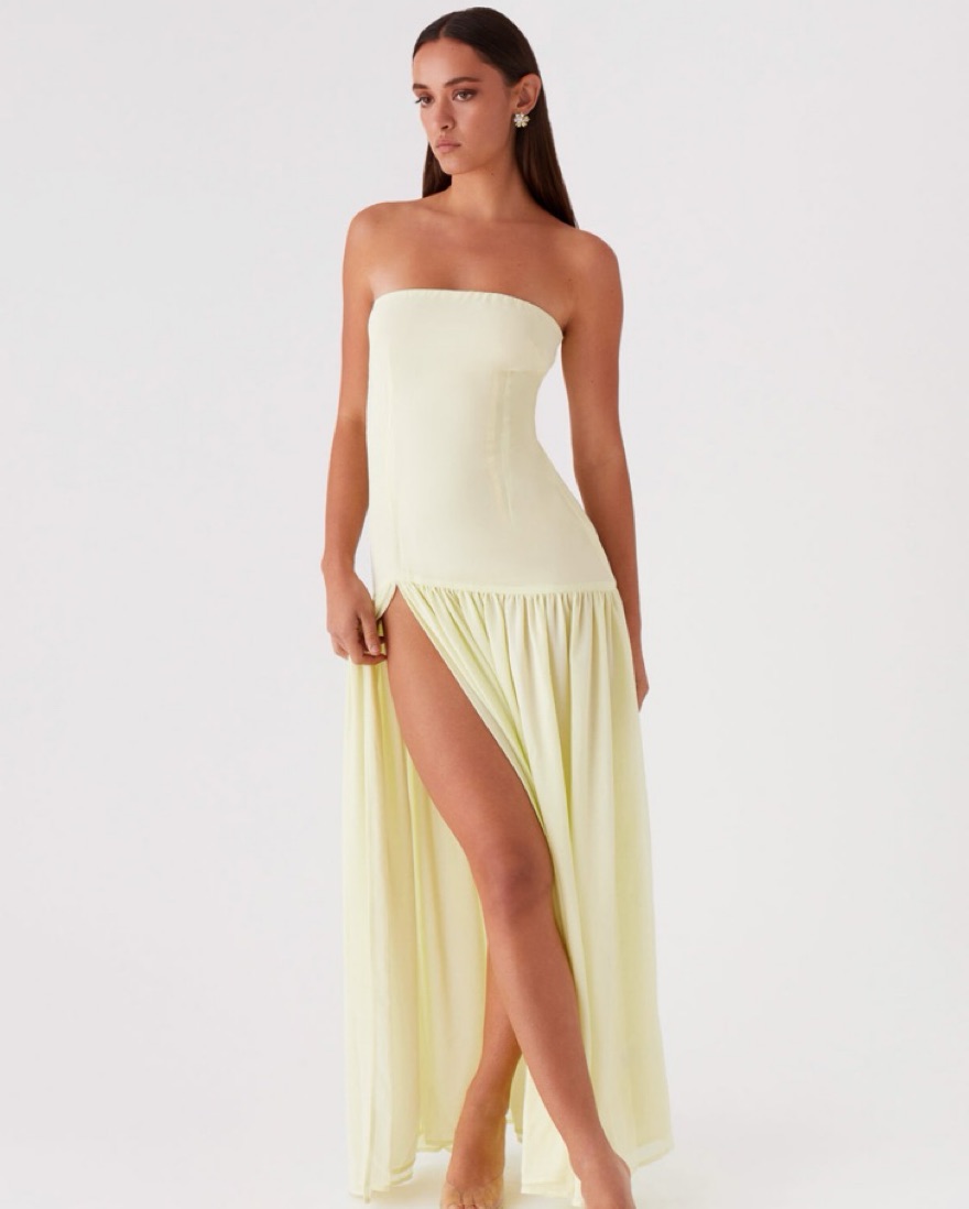 The Eden strapless maxi dress in yellow is ideal for both formal events and special occasions.