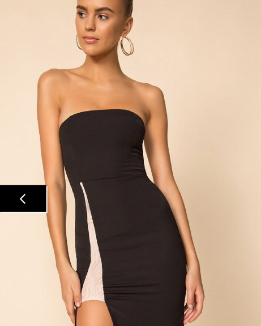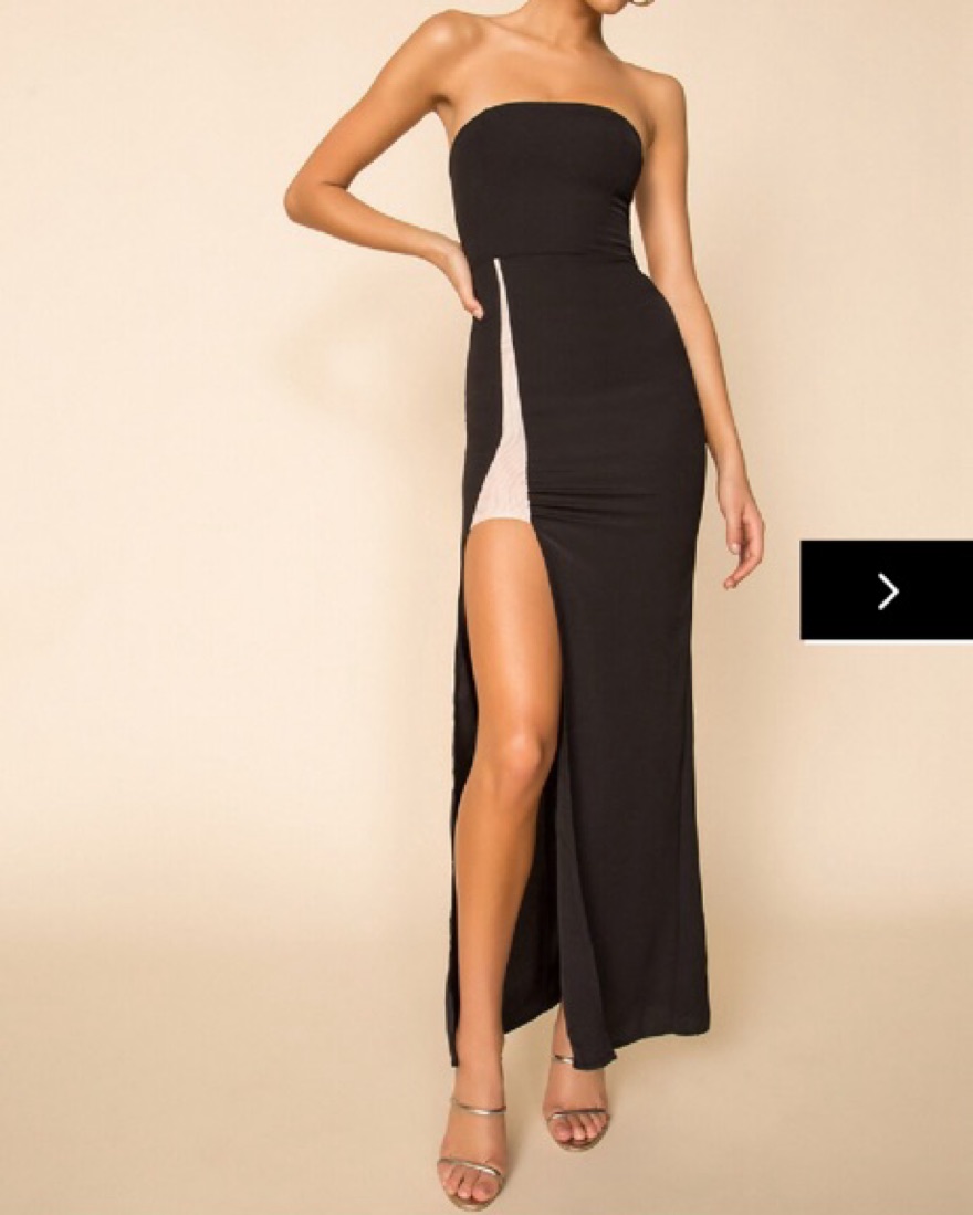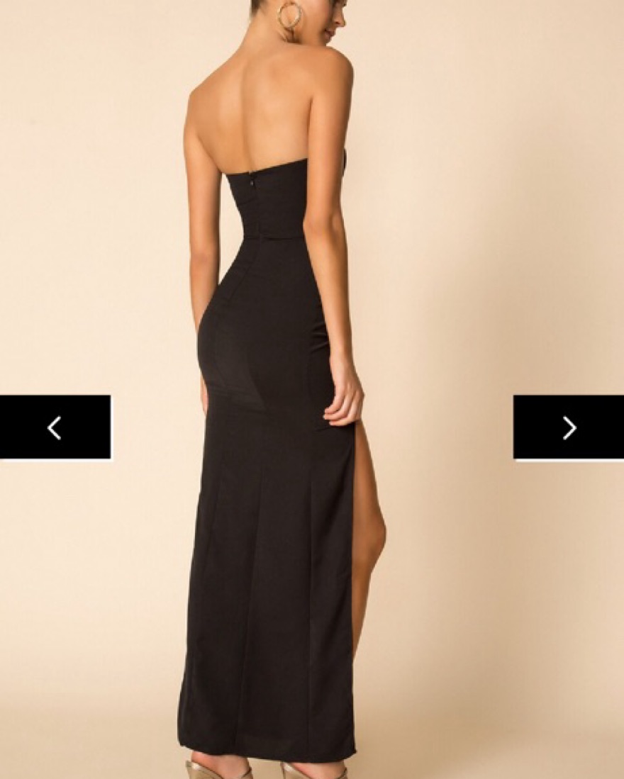 This Superdown long black dress is simple, elegant and sexy. Perfect for black tie events, parties and nights out during the spring/summer and on vacation. The strapless dress is fitted and highlights a great silhouette.