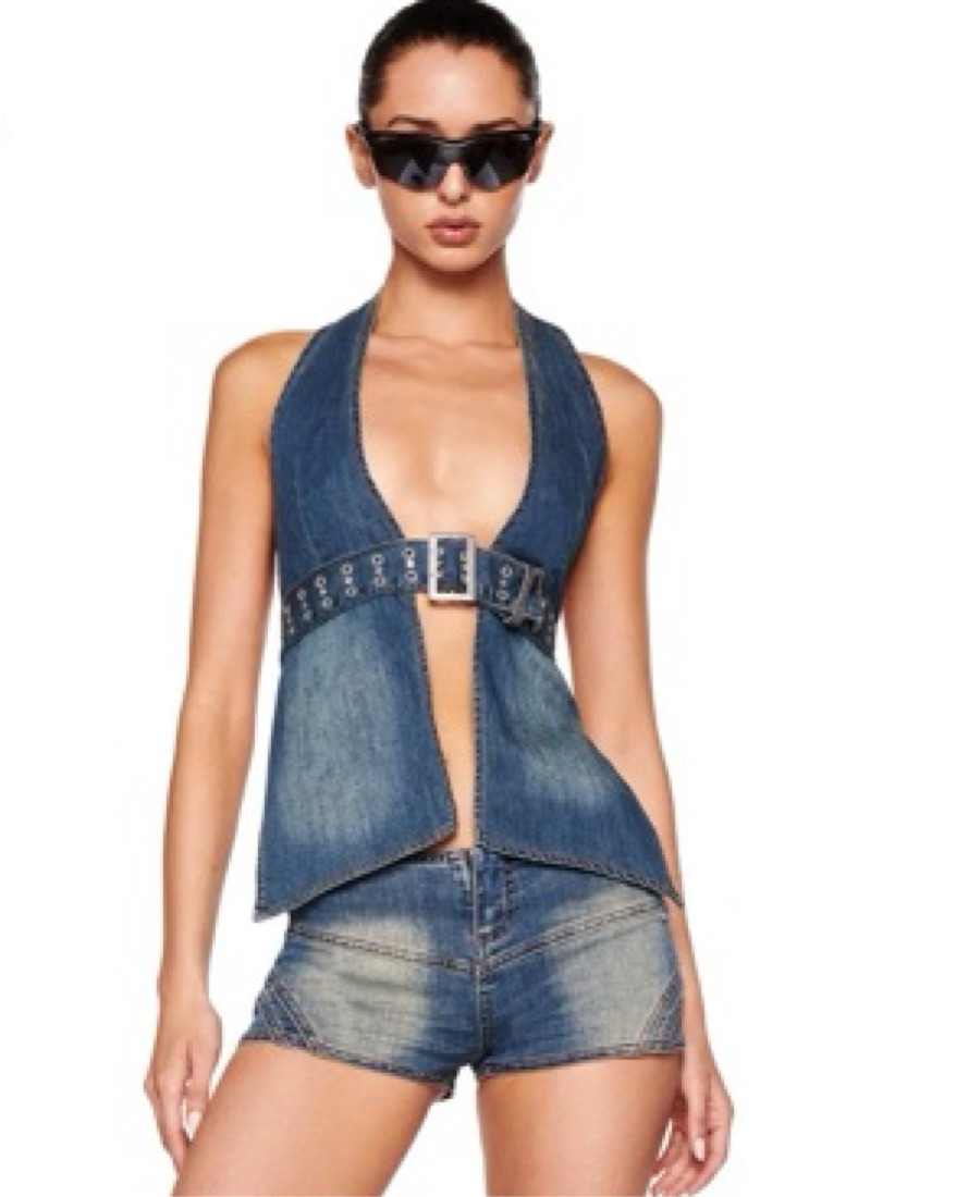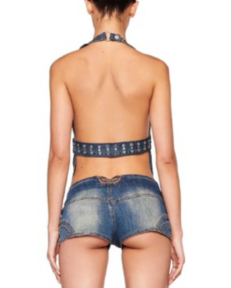 Denim blue matching set top & shorts - Top (Size M) Shorts (Size L)