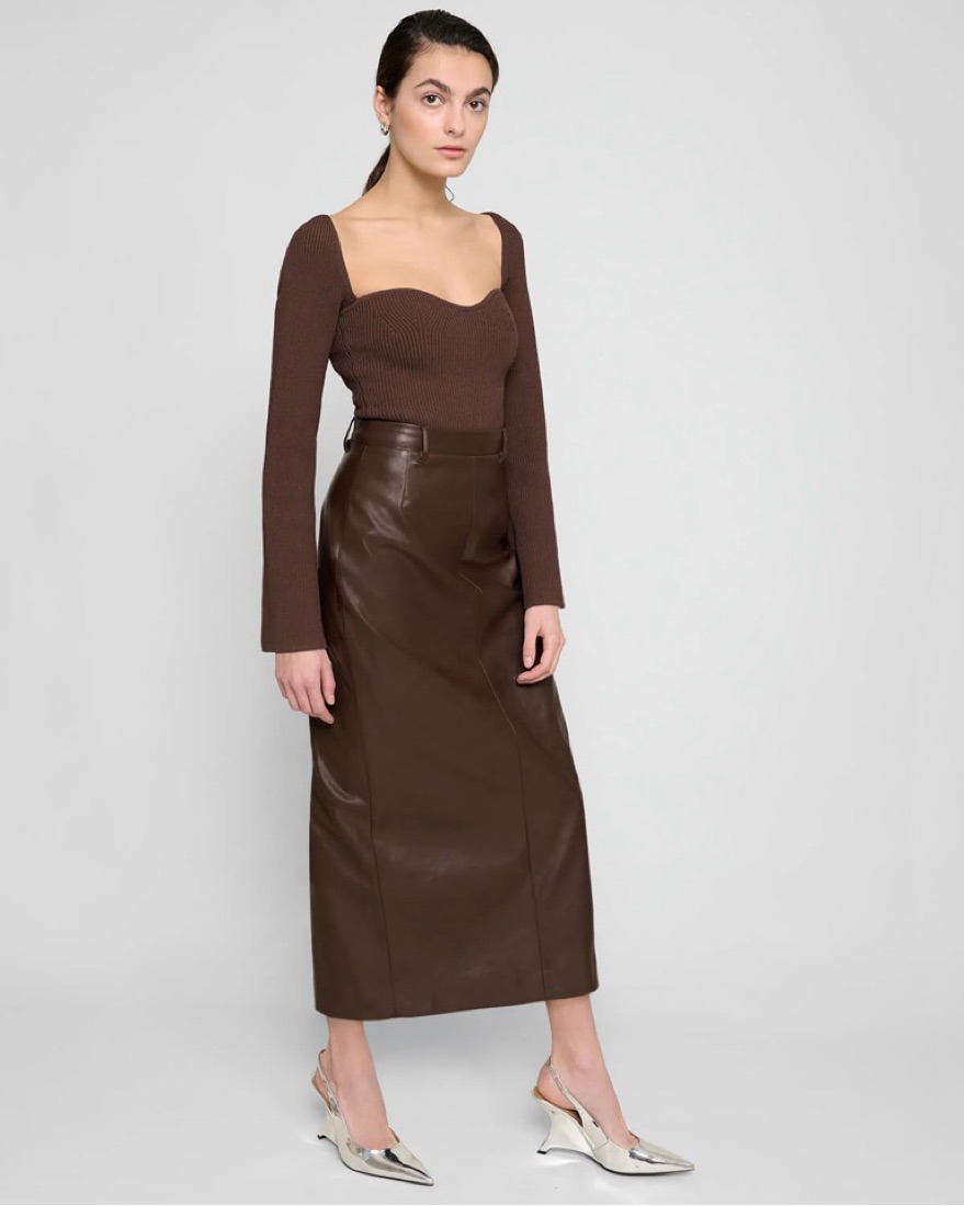 Pixie Market Yve Brown Leather Skirt XS by Pixie Market - Pickle