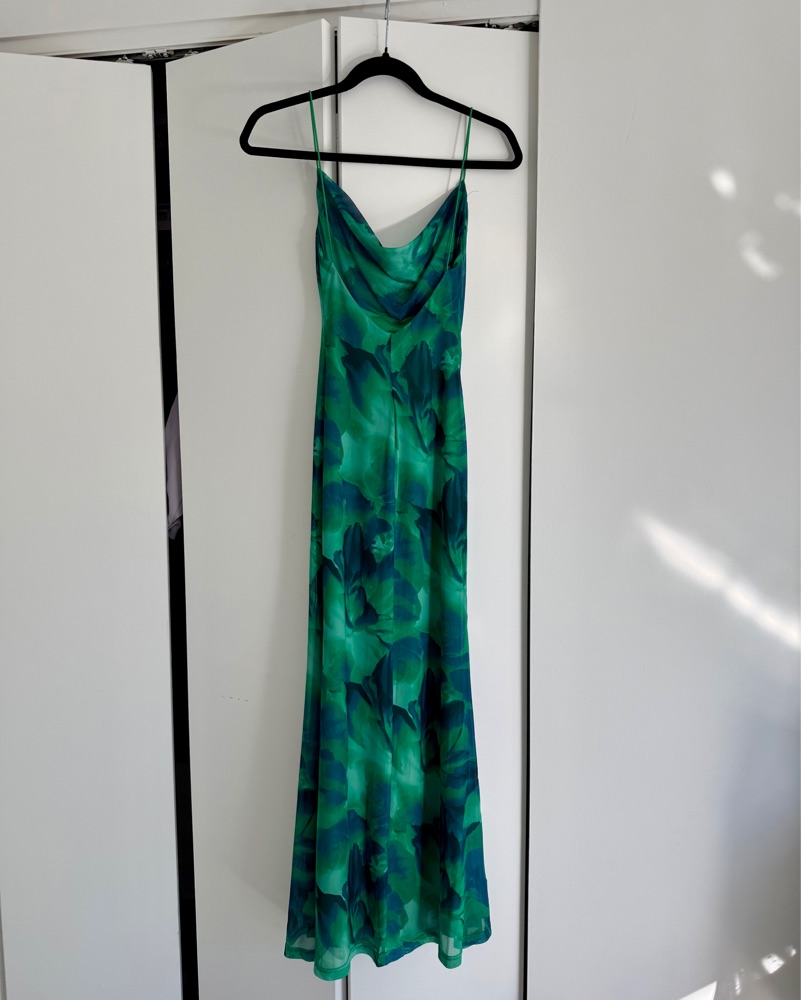 Floor length dress from Runaway the Label - perfect for beach getaways/weddings ☀️⛱️ fabric is super stretchy AND form fitting, so you’ll be extremely comfortable wearing this!