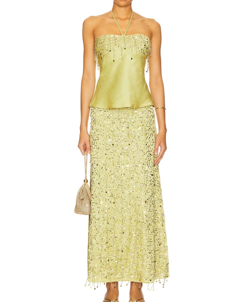 Asta Resort Yasmin Hand Beaded Skirt by Asta Resort - Pickle