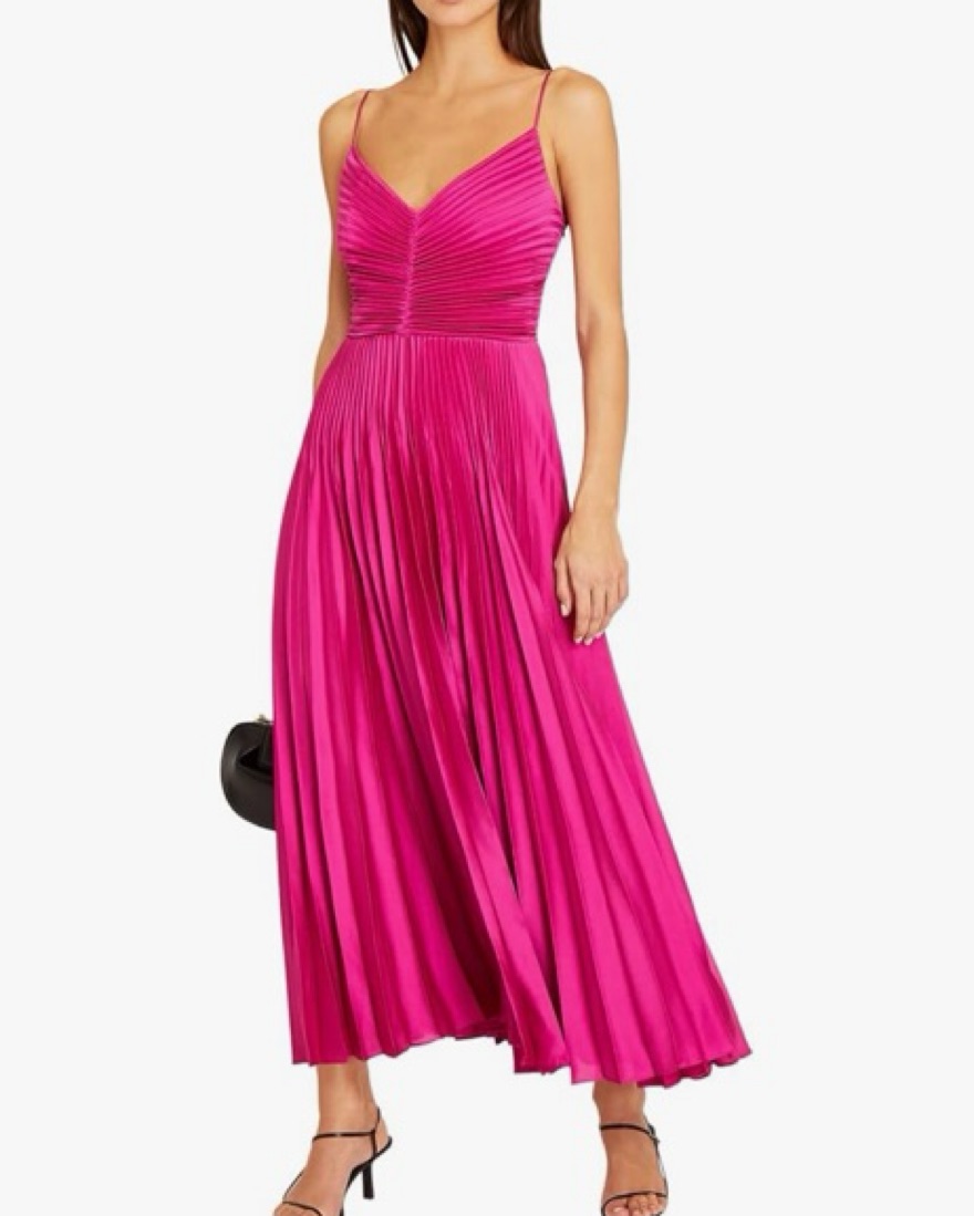 Club Monaco Pink Pleated Midi Dress. Great for a spring or summer wedding!