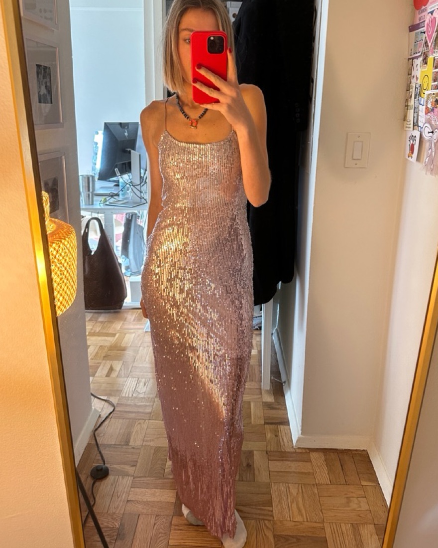 Perfect for New year’s eve, black tie event, or a holiday party! Ombré bottom that looks see thru with slit in back. “Grand Sequin Embroidered Gown” Fits like a S. Good condition but was from a sample sale so small flaws but unnoticeable when you wear