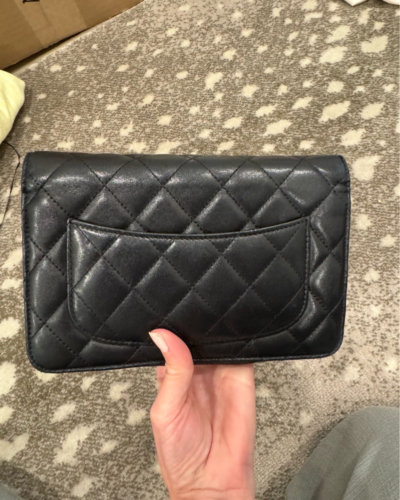 This sleek and stylish Chanel crossbody bag is perfect for elevating any casual or dressy outfit. The quilted leather and chain strap make it a versatile accessory for a night out or everyday wear.