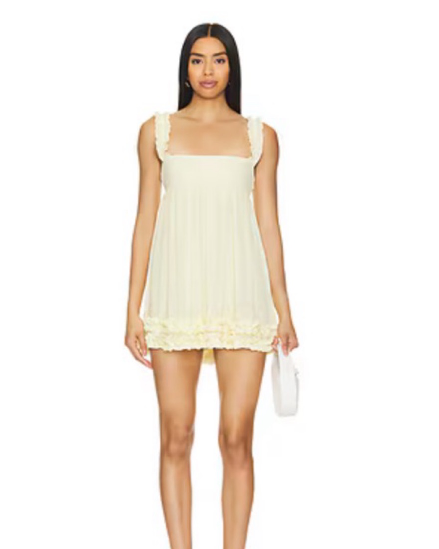 Chandra Mini Dress in Butter yellow. Majorelle on revolve. Worn once. Great condition super cute and comfortable!