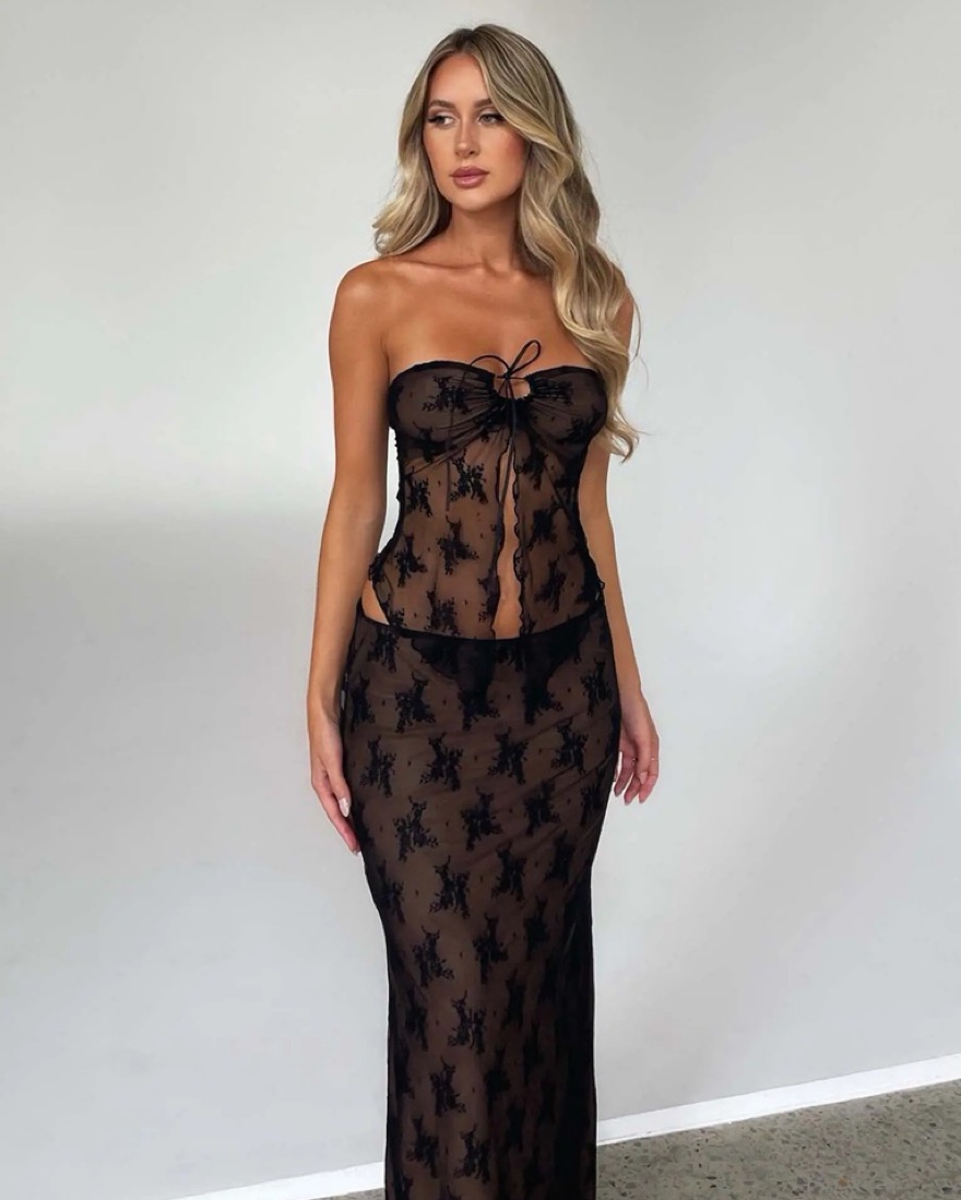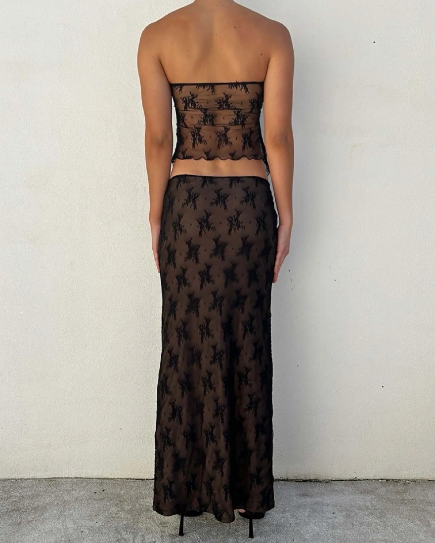 XXS- lace black top and matching maxi skirt in black