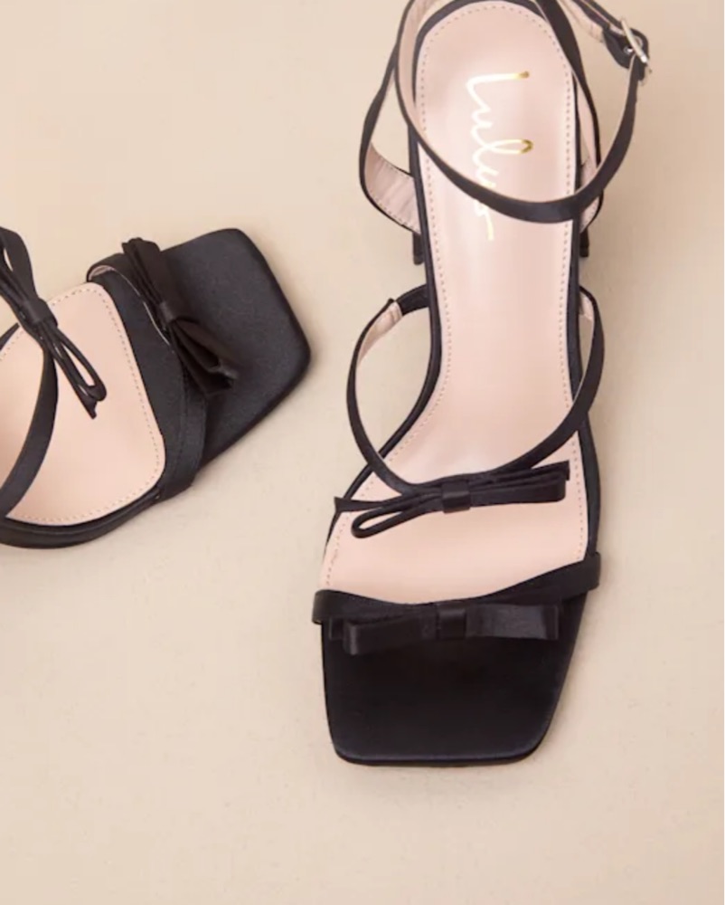 Black Satin Bow Ankle Strap Heels by Lulus - Pickle