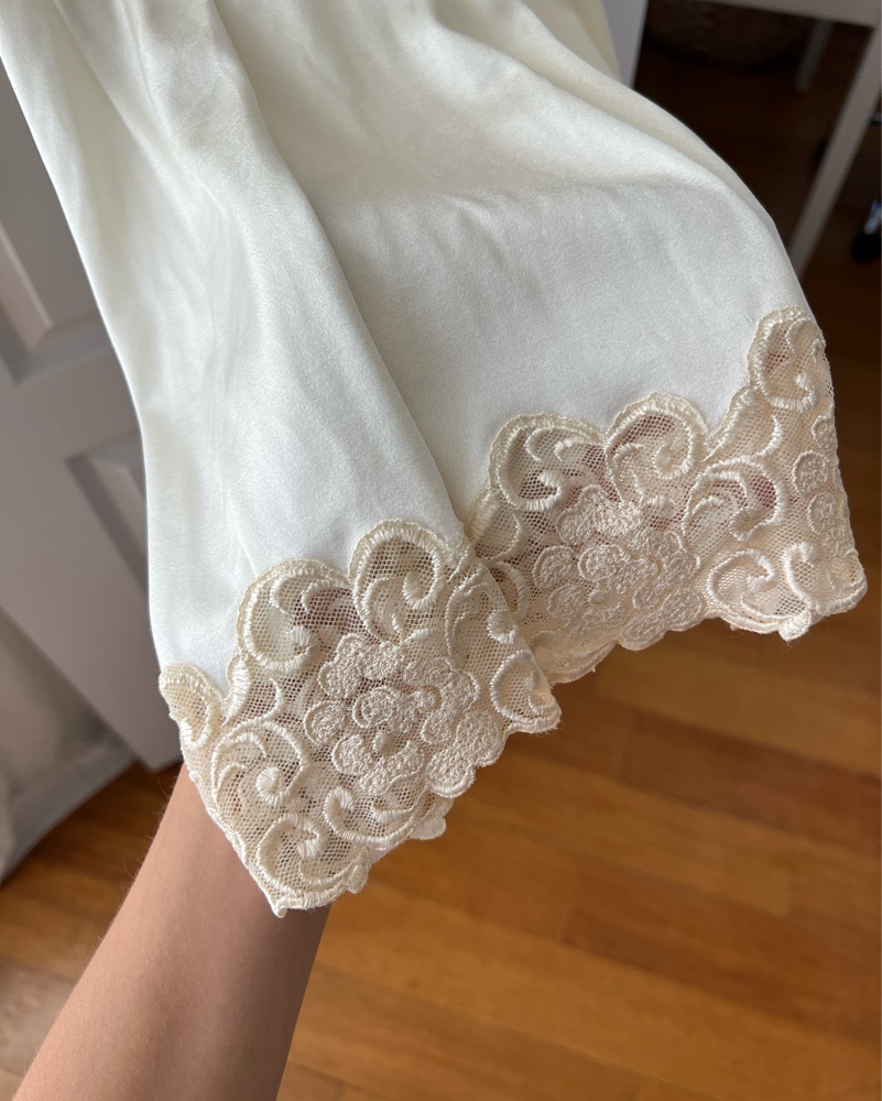 Authentic vintage La Perla slip dress in an ivory color. So so good for brides/bridal or just a delicate slip look. Can fit 0-4 US women’s, satin material that can stretch. Preferably looking to sell!!!
