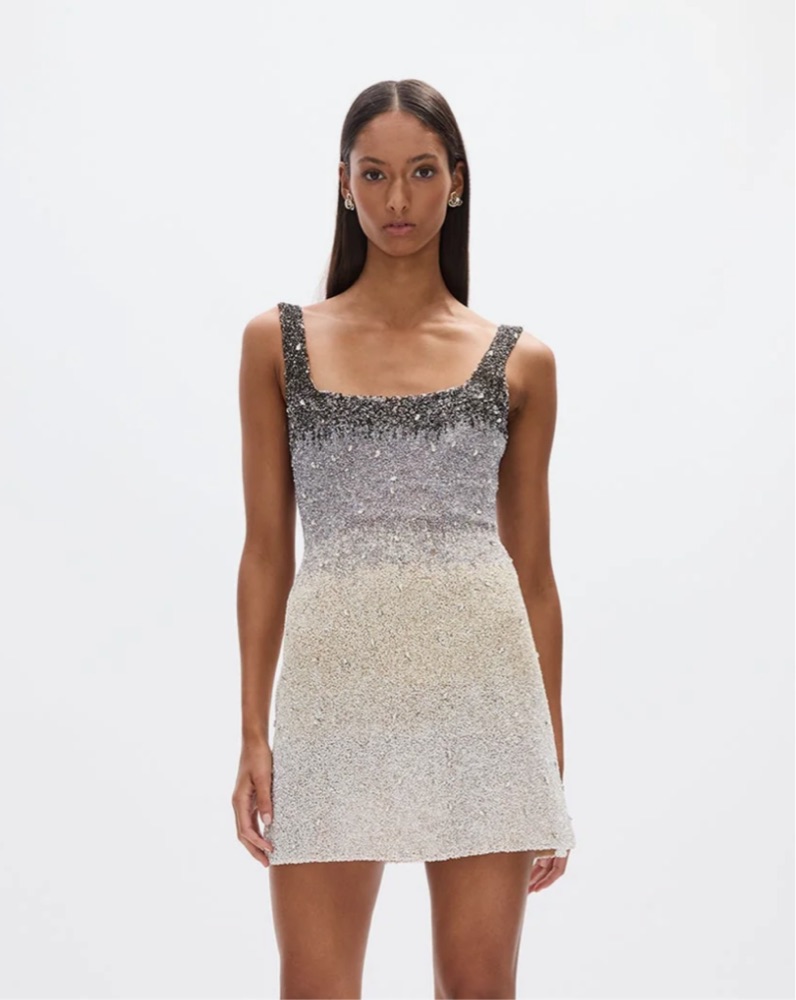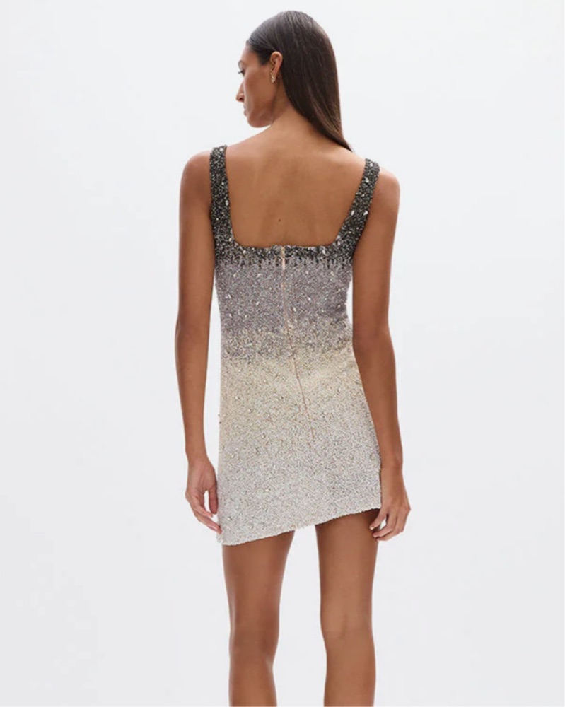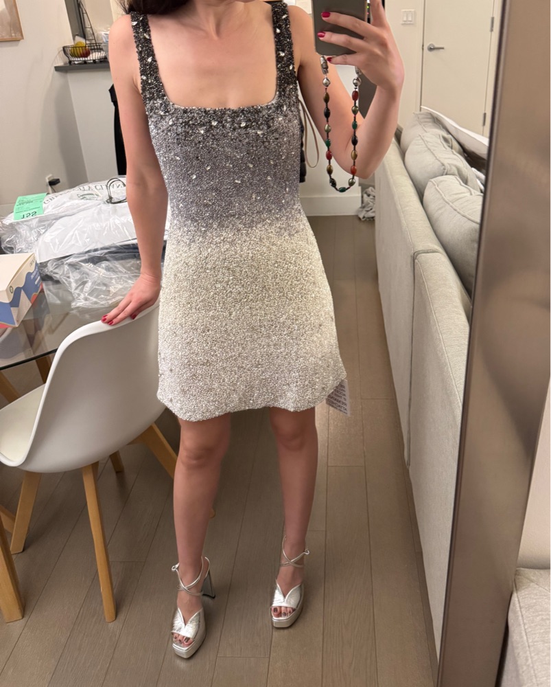 Rachel Gilbert Kaito Mini dress in size 0, true to size. Color is Black/Grey Ombre. Only worn once! All over embellishment dress that is individually hand sewn. Subtle a-line mini dress. Originally $1,695. Please handle with care - no spray tans or any cosmetic products that could damage the dress.