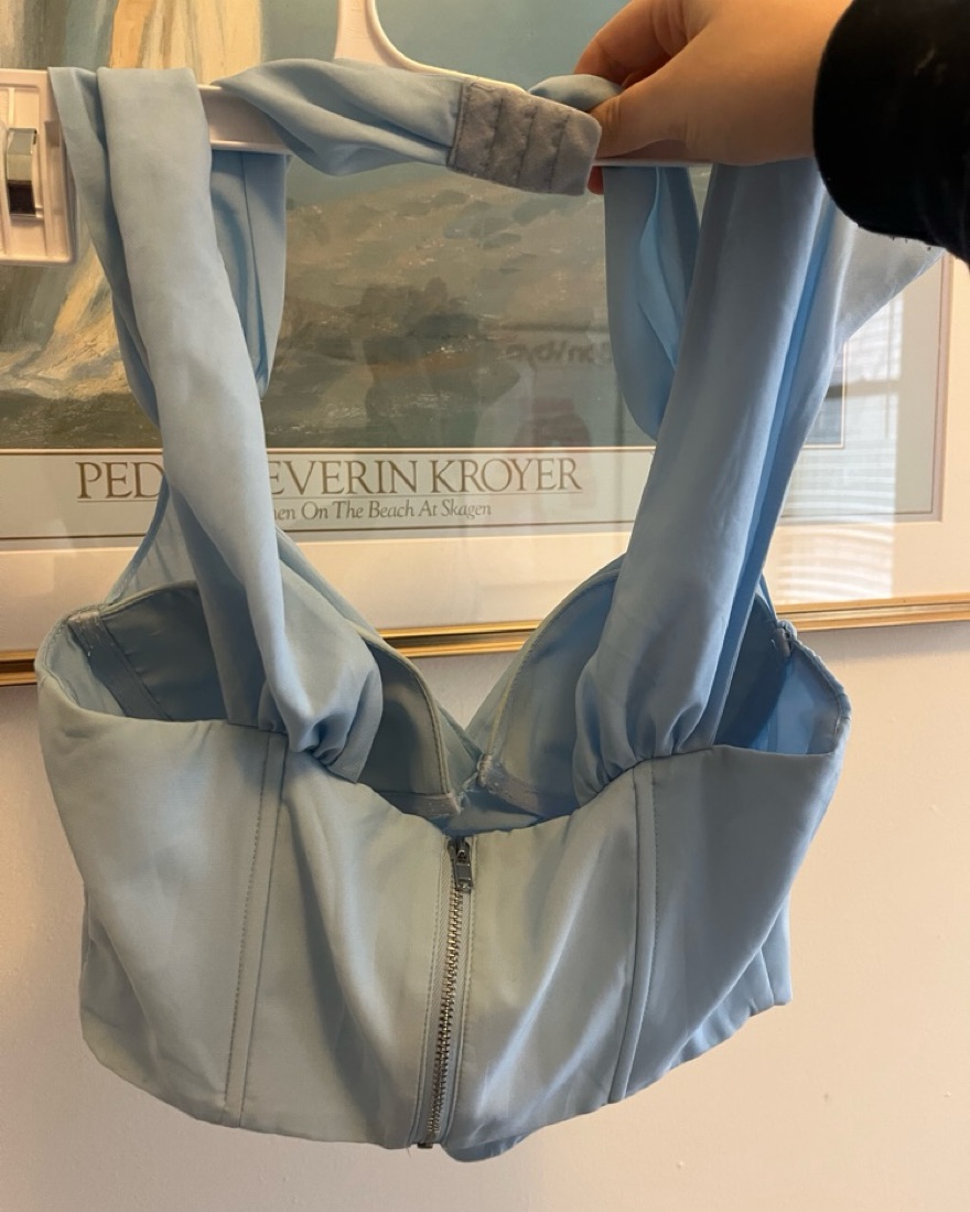 This stylish chiffon corset from Oh Polly is perfect for a special occasion. The fluid, draped silhouette and eye-catching details make it a versatile choice for events like weddings, parties, or a night out.