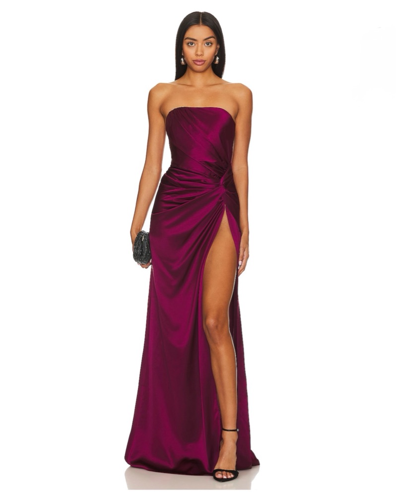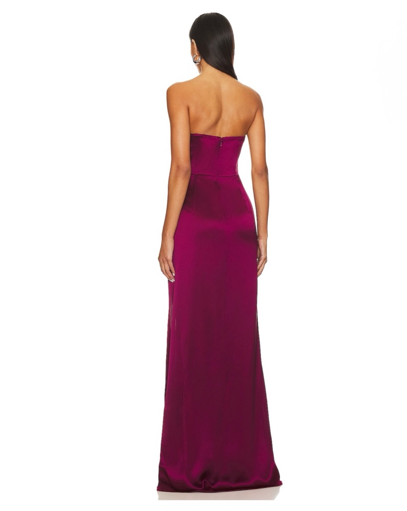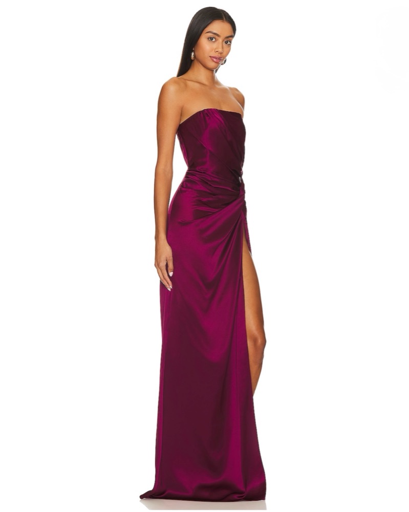 Luxe, high-quality satin in a rich boysenberry hue with a flattering silhouette and elegant flow. Wore it as a bridesmaid and got endless compliments! Perfect for weddings, bridal parties, or any special occasion.