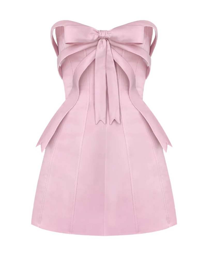 Lirika Matoshi Pink Bow Mini Dress by Lirika Matoshi - Pickle