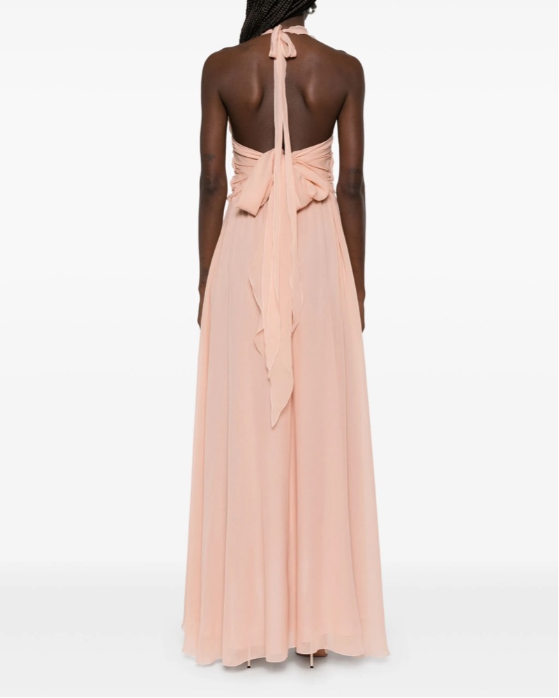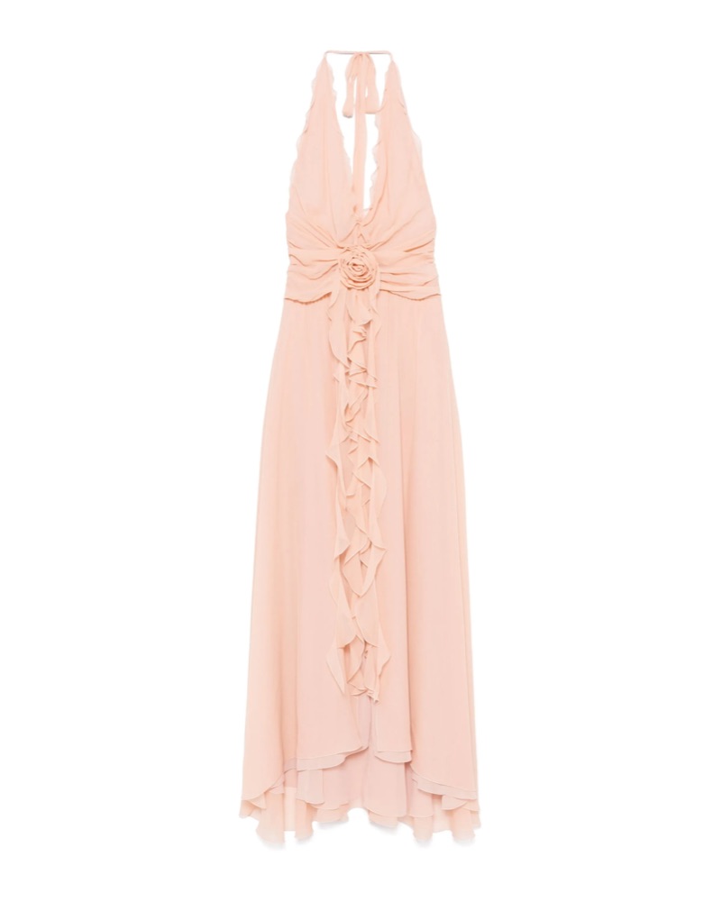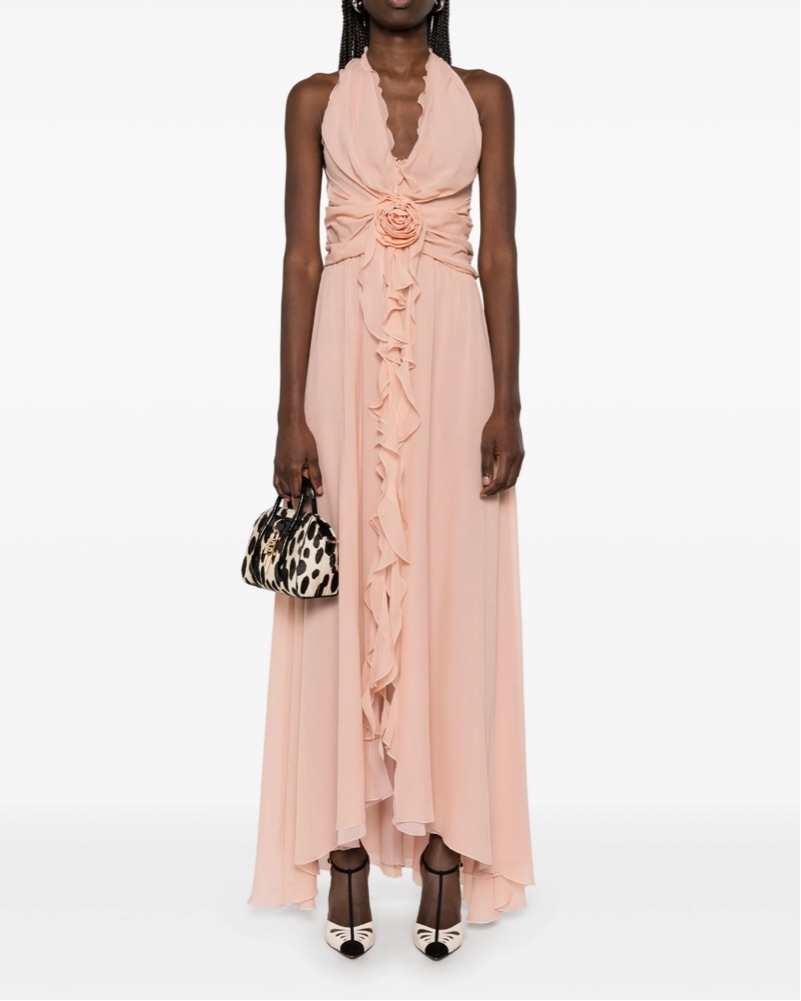 Blumarine georgette floral appliqué maxi dress in powder pink. Perfect for a summer wedding or event. Retail: $1,620. Italian size 44, equivalent to a US M. In great condition, no signs of wear or damages.
