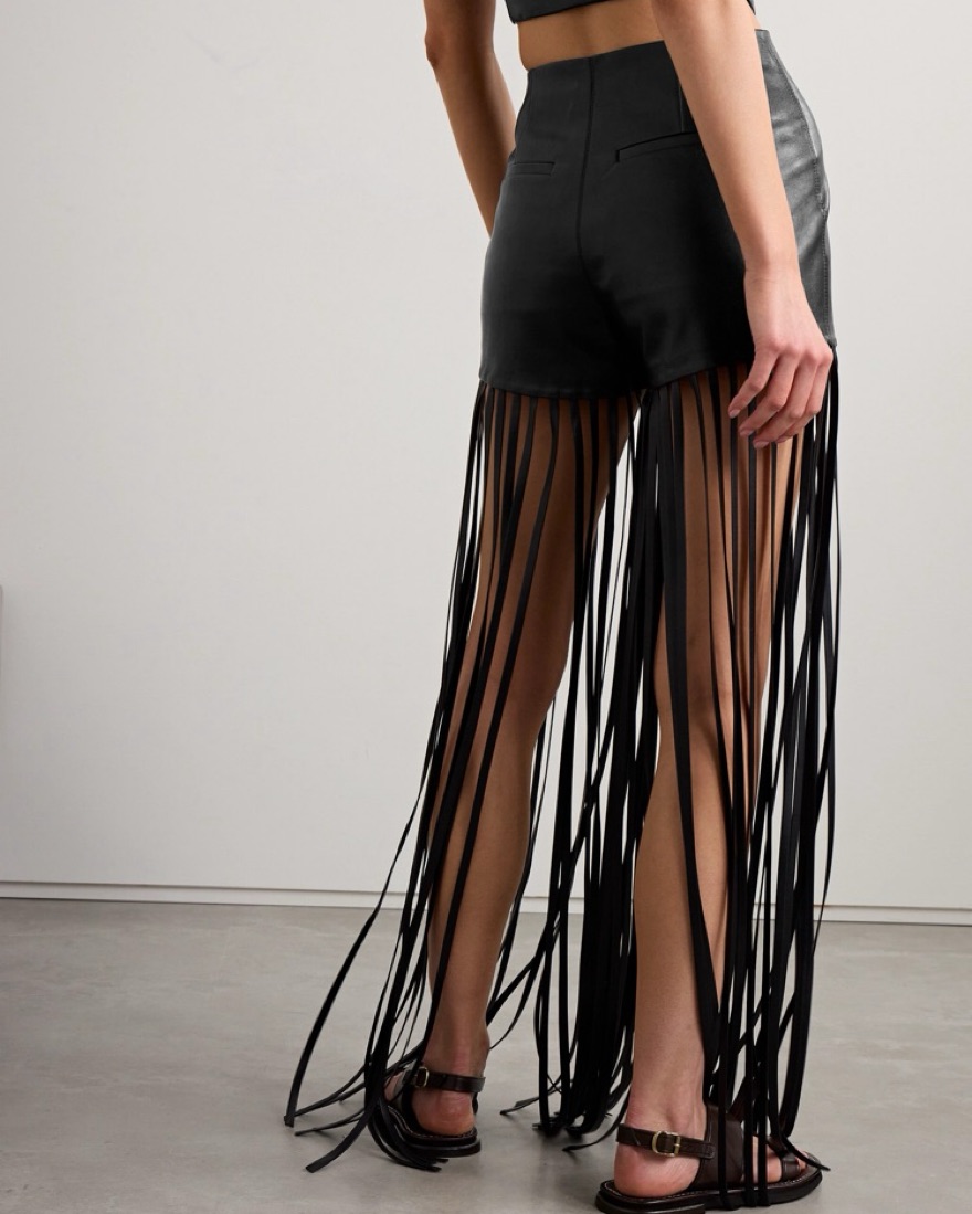 Nanushka Amalee Fringed Leather Shorts in Black Leather