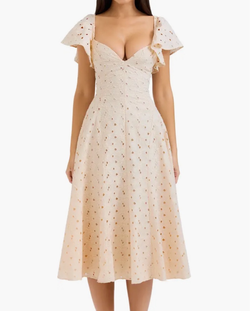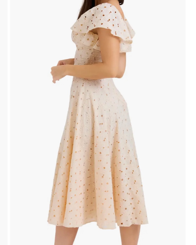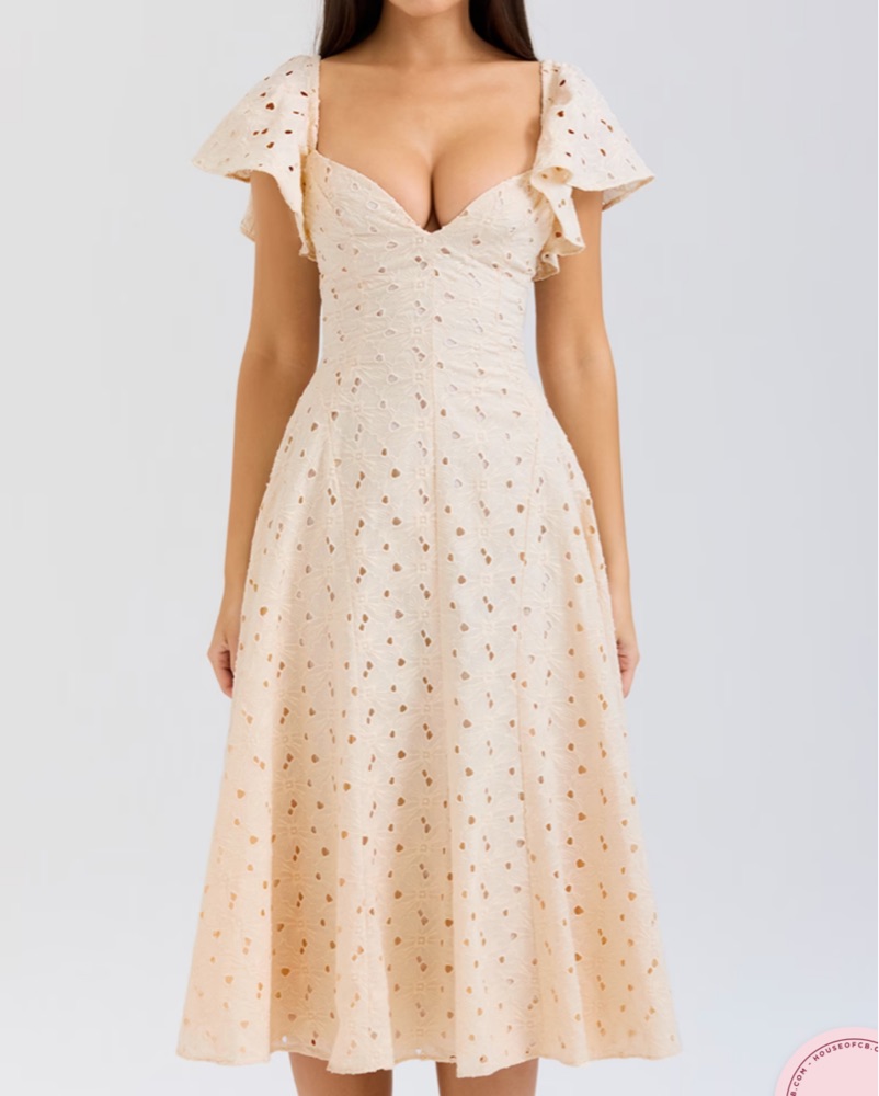 HOUSE OF CB DRESS “AMAYA Cream Tea Broderie Anglais Midi Dress” 🤍 Dry clean only, perfect for spring/summer events!