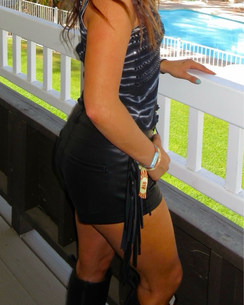 Superdown Fringe Leather Micro Shorts by Superdown - Pickle