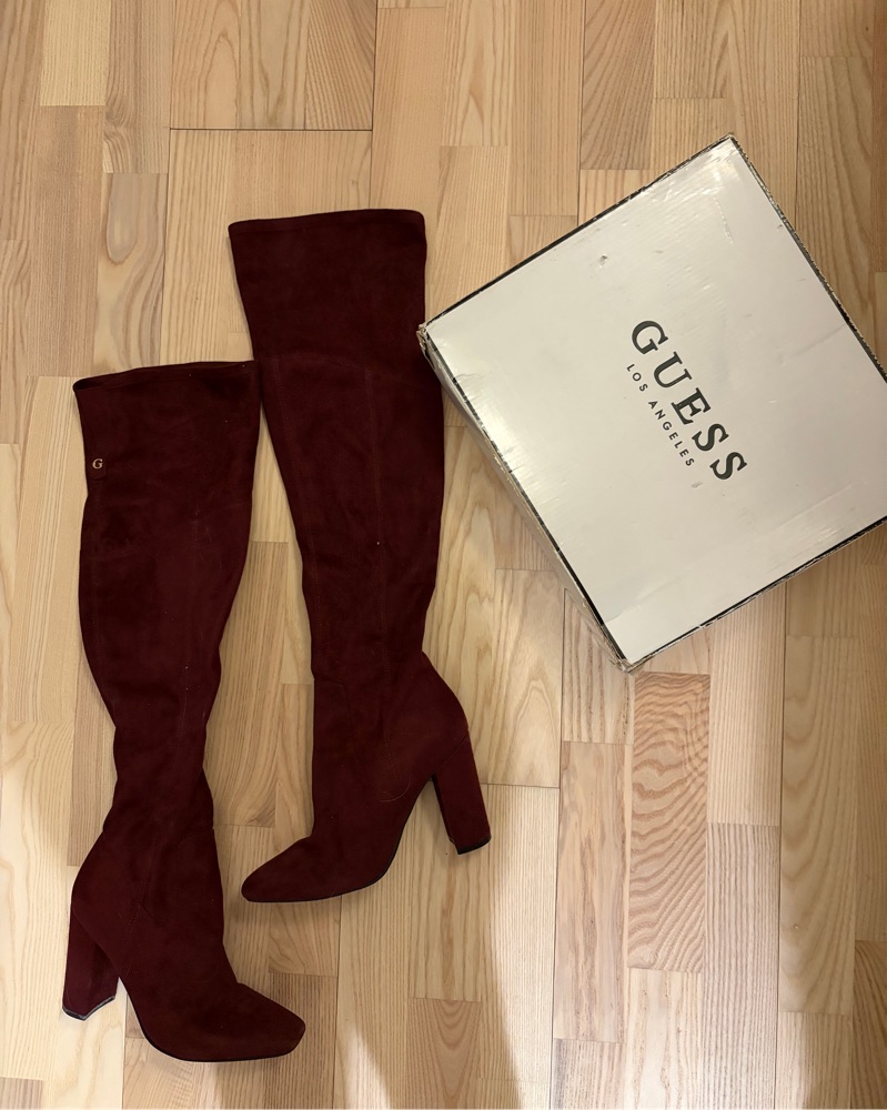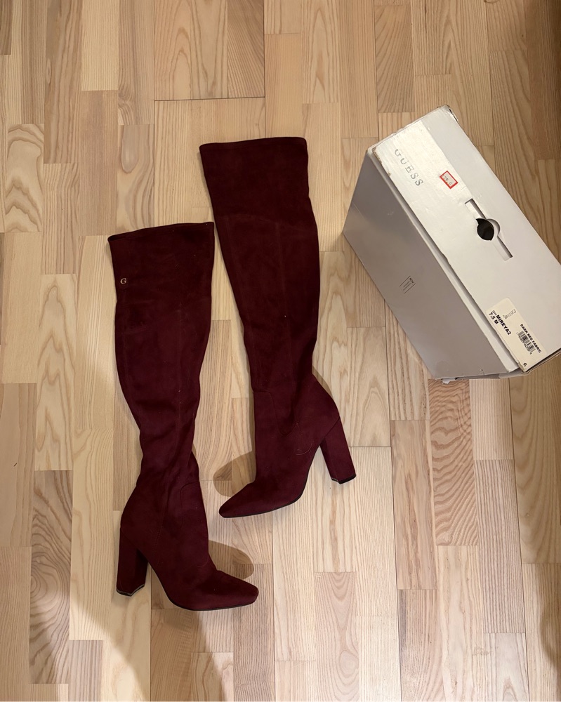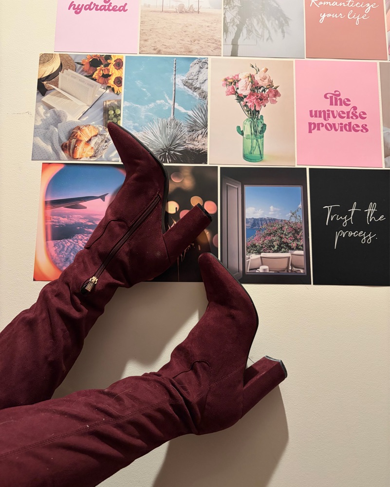 These chic over-the-knee burgundy suede boots elevate any outfit. Wear them to add a touch of sophistication to a night out or pair with a mini dress for a stylish date night look.