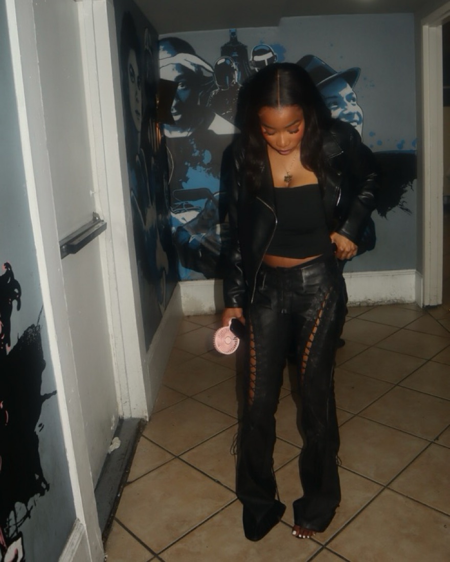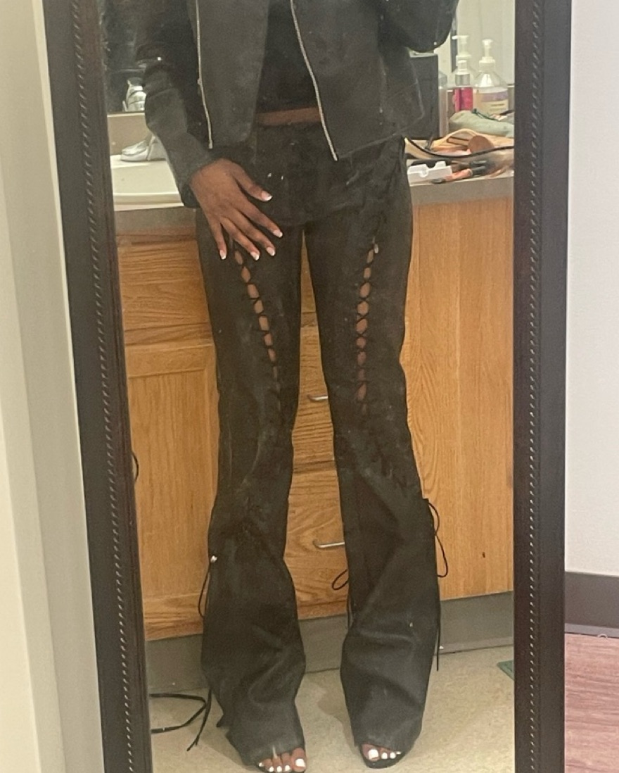 Versatile low rise leather pants, perfect for a night out! I’m 5’3 for reference #mattebrand #leatherpants #goingoutpants