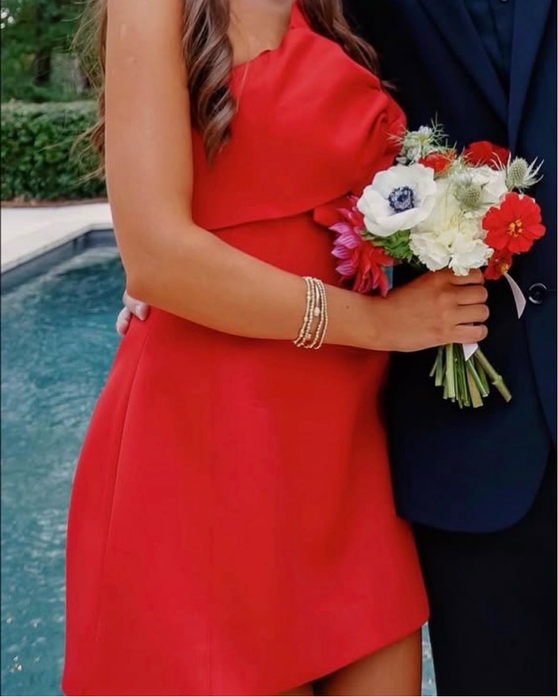Red American threads Alix twist front bubble mini dress