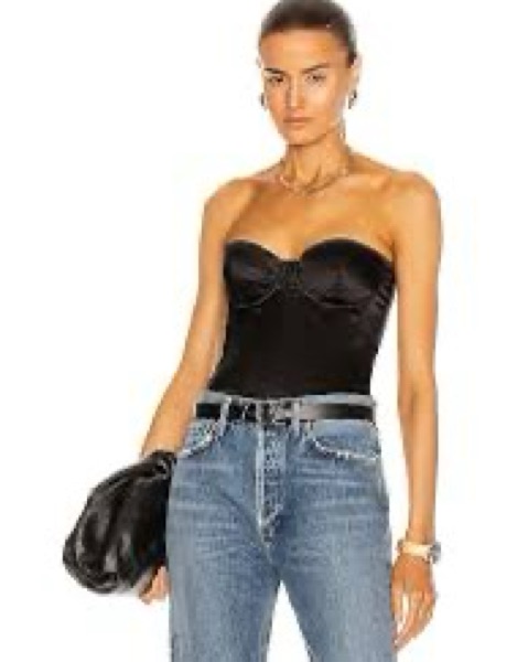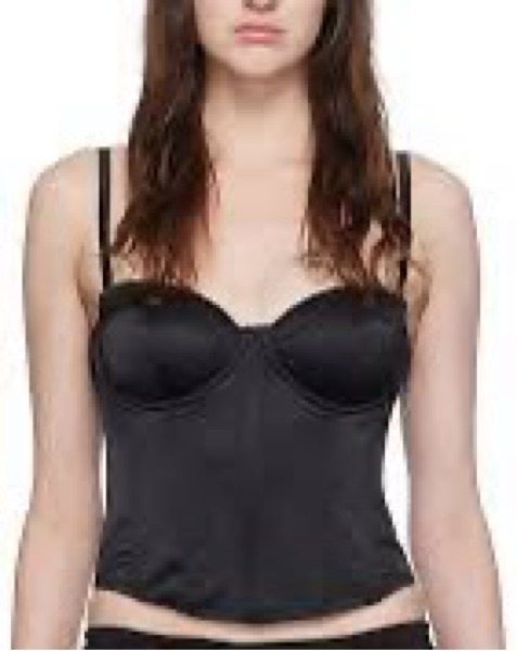 Black corset top with removable straps.