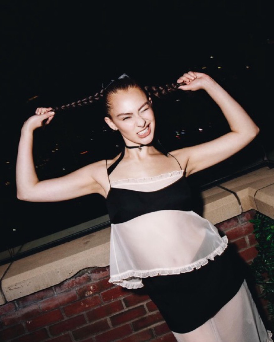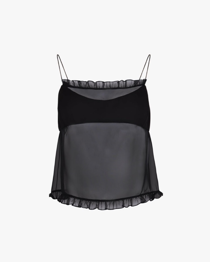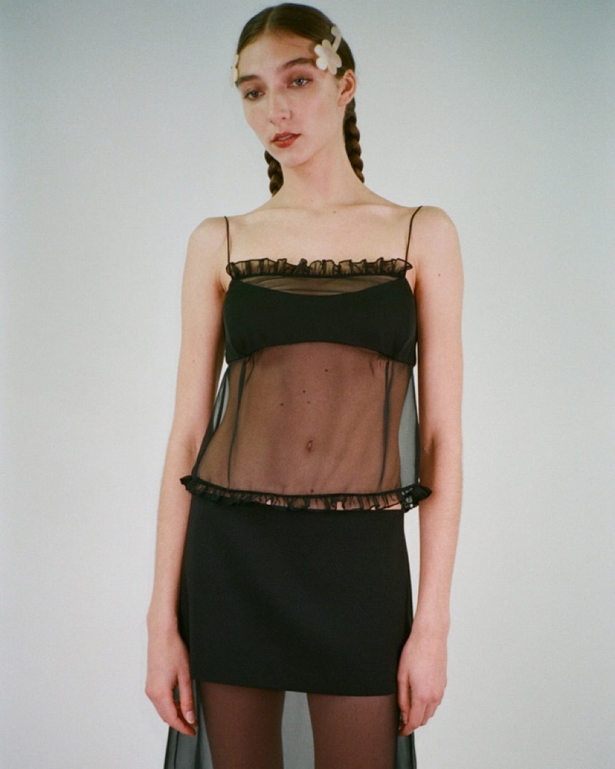 Same top Lola Tung wore just the black version! Brand new a super cute black top, best for a small bust fit wise and isnt as sheer as it looks in the photos, but still semi sheer. Delicate fabric please take care of her any damages will be charged extra.