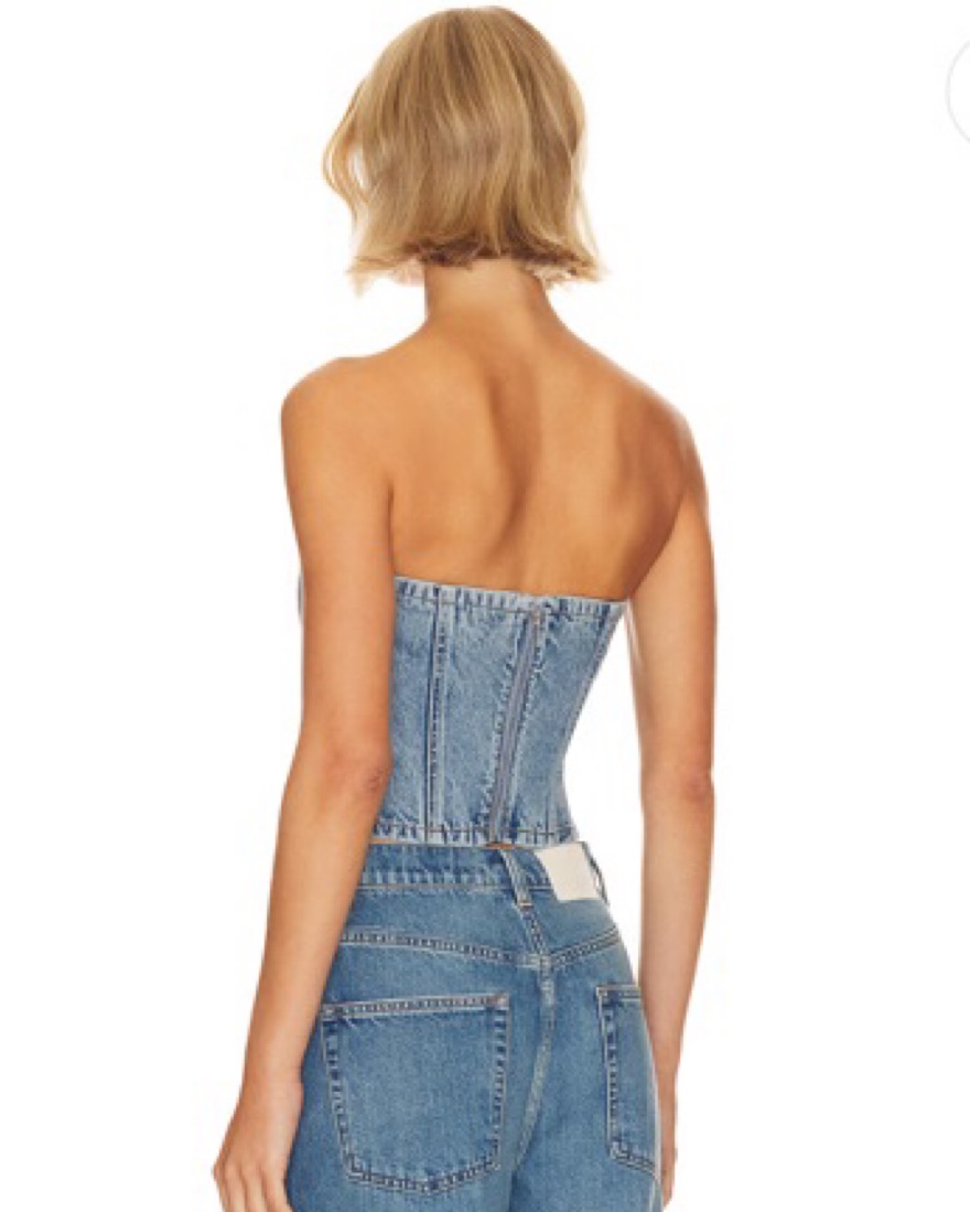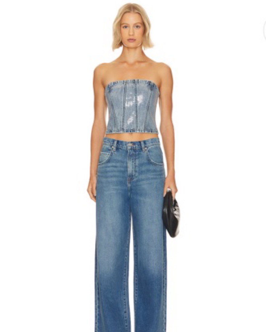 Strapless Sequin Denim Top by Grlfrnd Denim - Pickle