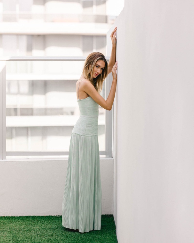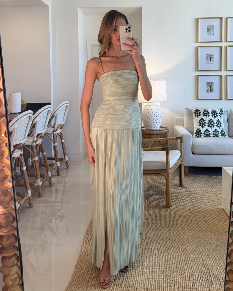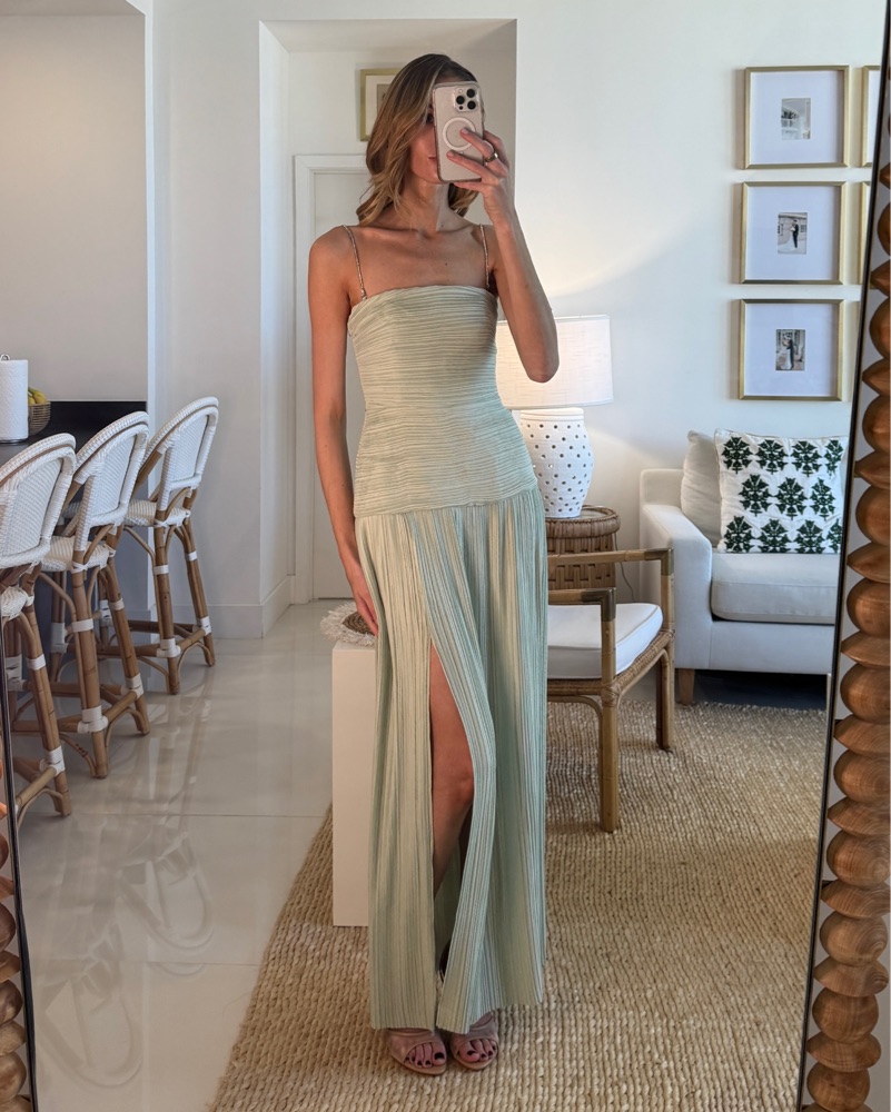 New season - please wear with care. Fits true to size. AU 8/US 4 or size S. True size 4. Can be worn with or without diamond straps. Tags: mint green dress, sage green gown, sage green black tie dress, green wedding guest dress, maid of honor, green bridesmaid