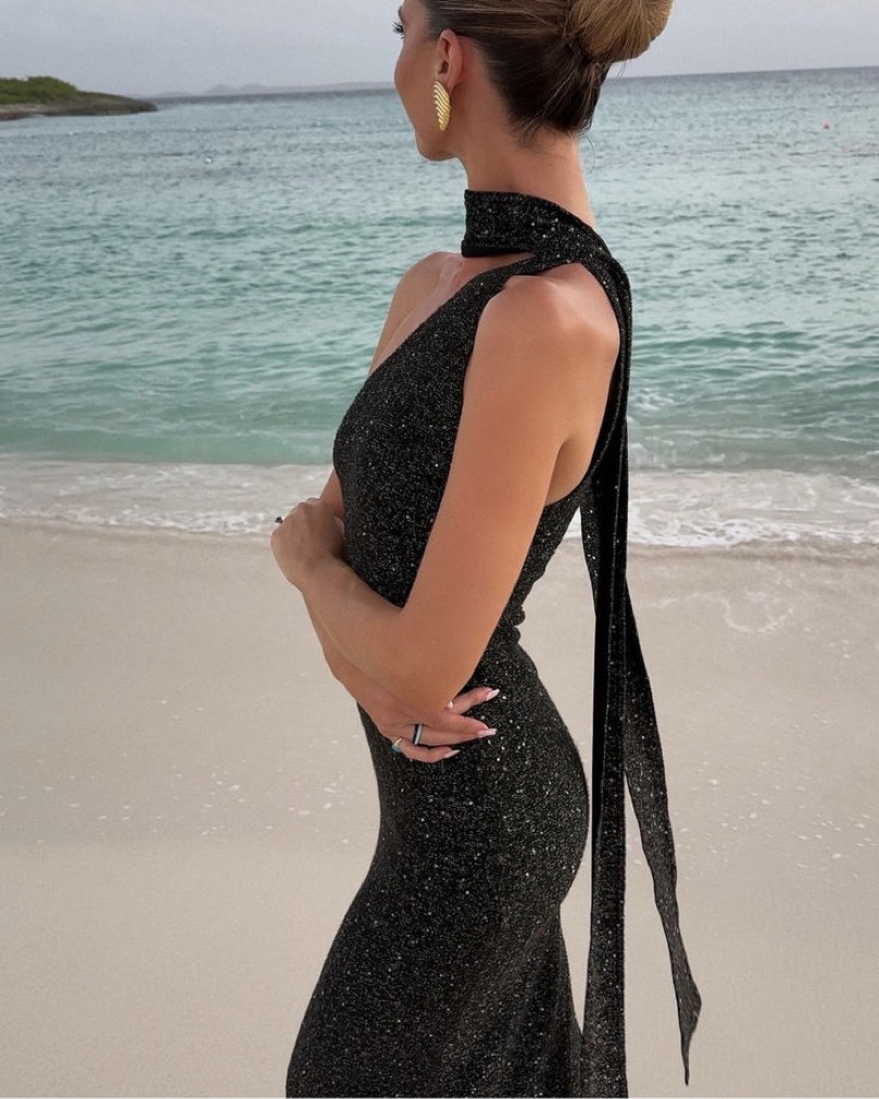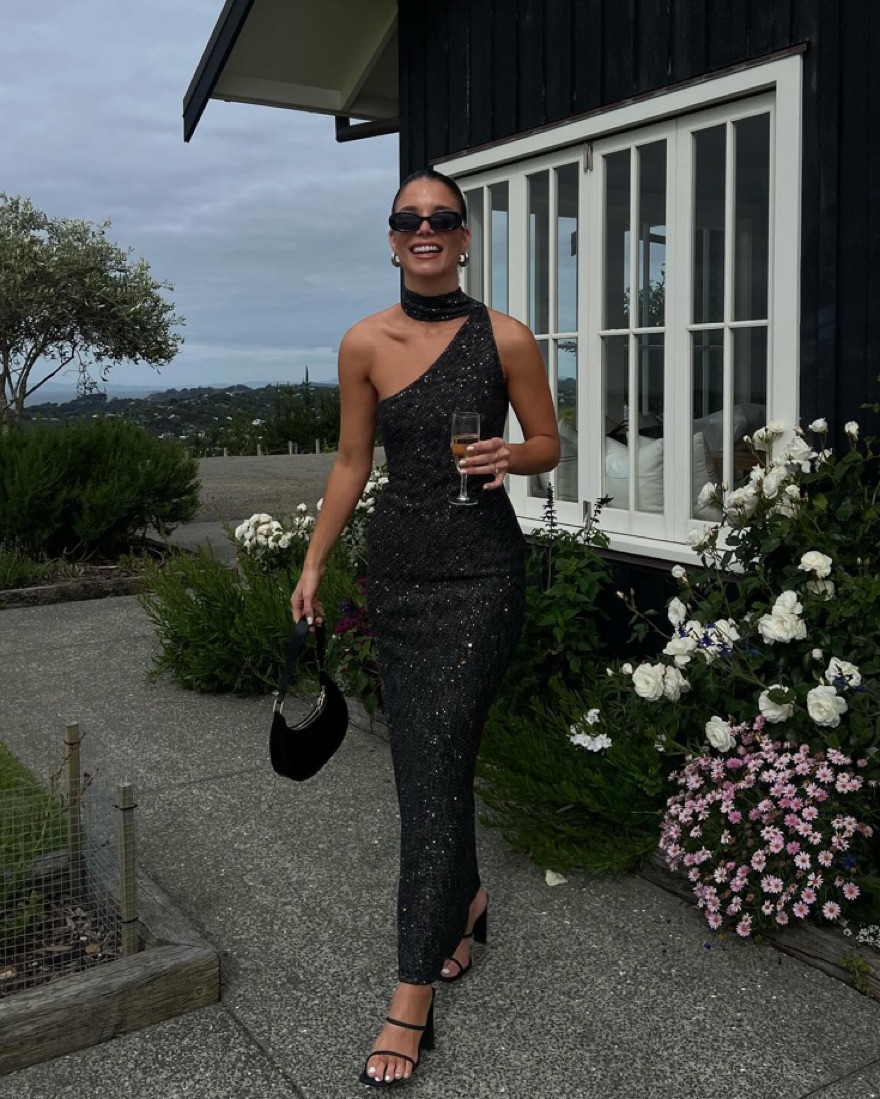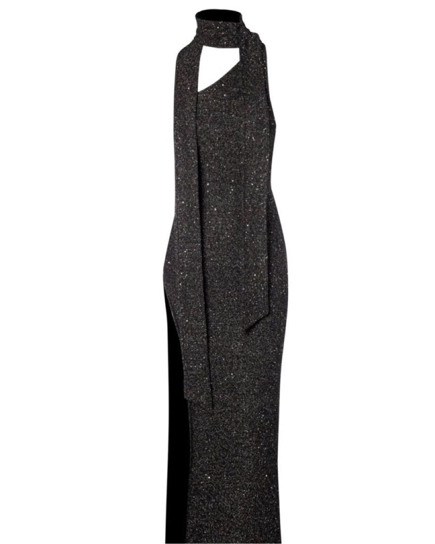 Asta Resort JENNIFER DRESS - CHARCOAL SEQUIN as seen on Izi Angus