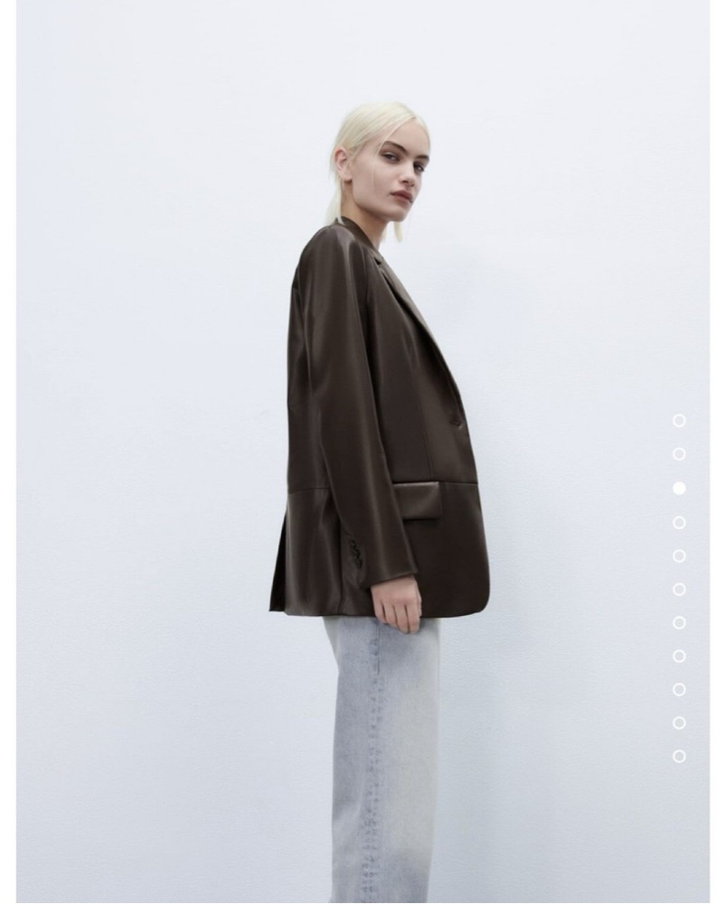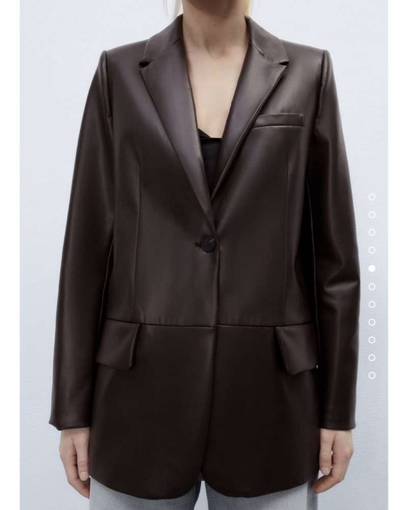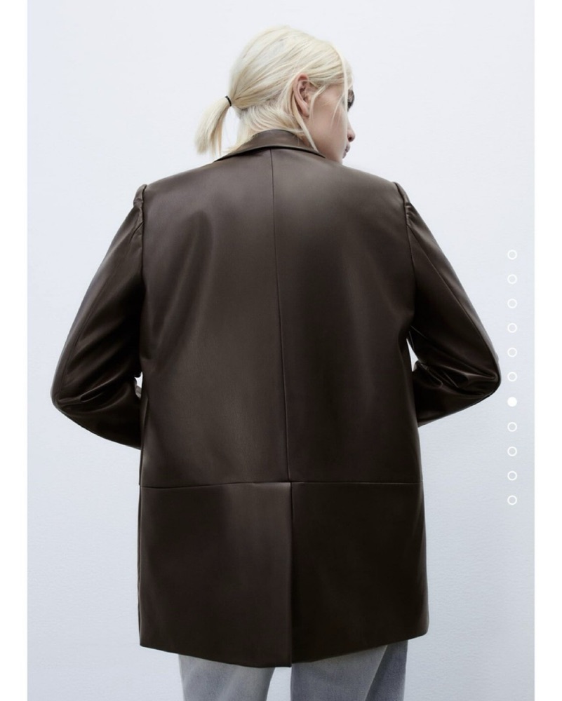 Dark Brown Faux Leather Masculine Blazer by ZARA - Pickle