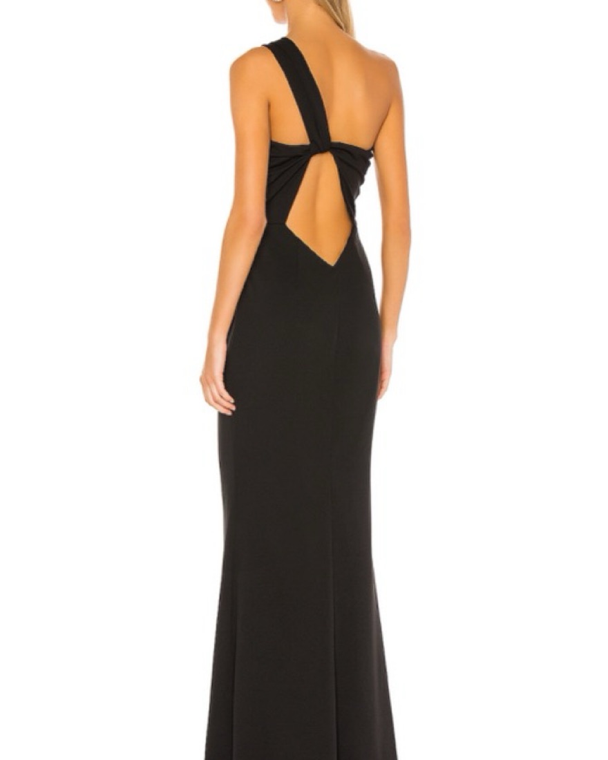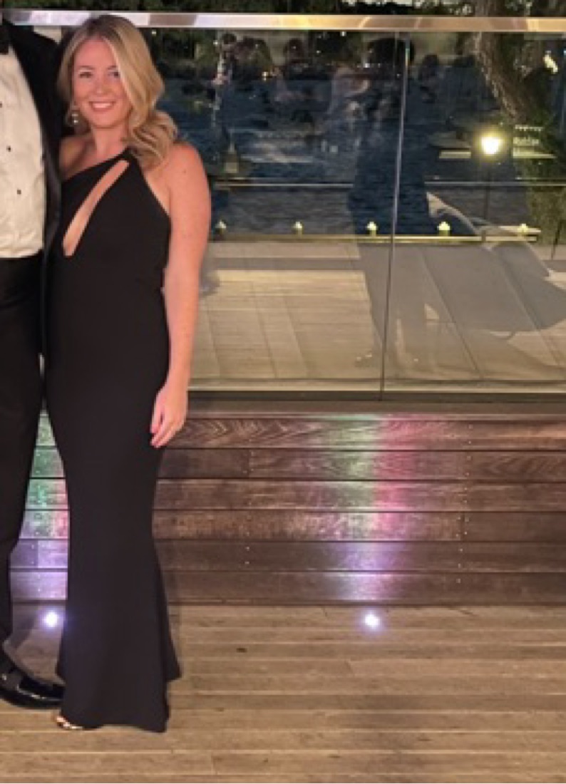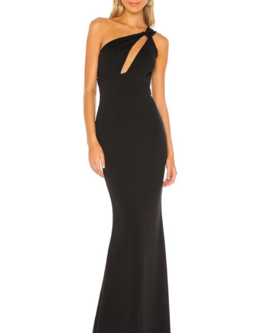Revolve style: KATR-WD110. Katie May Edgy Dress, color: Black. Size 2. Worn as a wedding guest dress to two black tie / Black tie optional weddings. Material is stretchy and flattering. I used fashion tape to secure the cut-out on the chest. Receive so many compliments when I wear it.