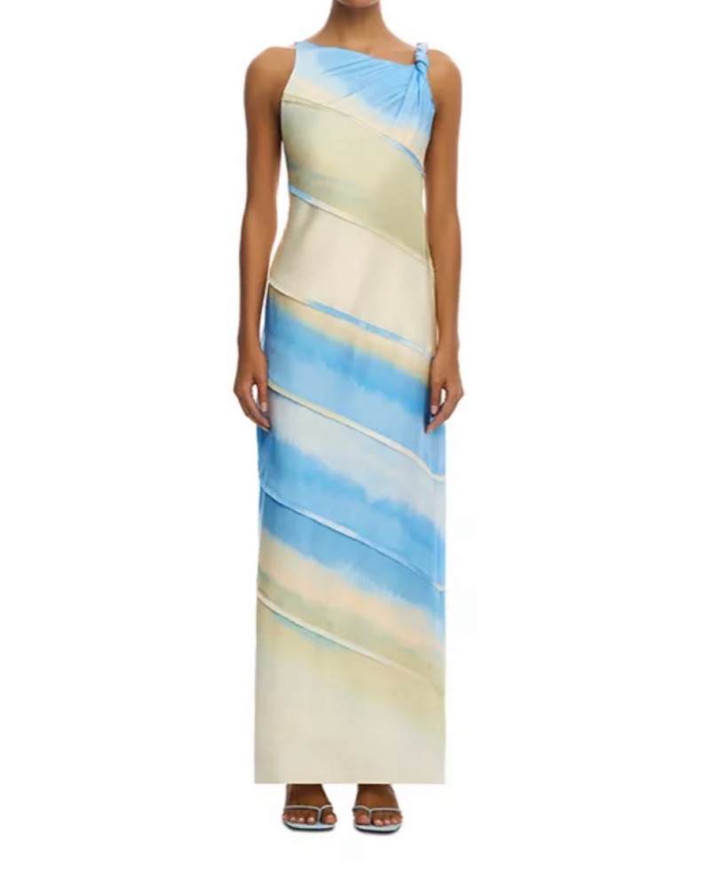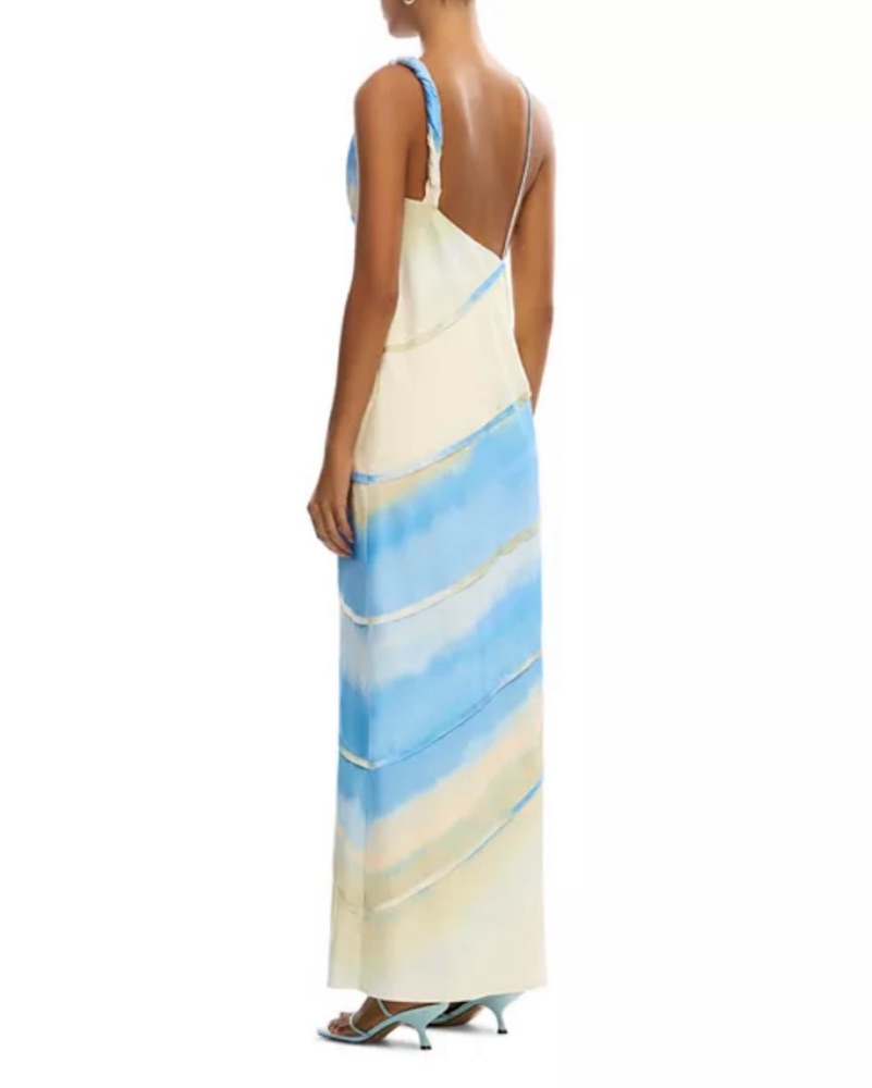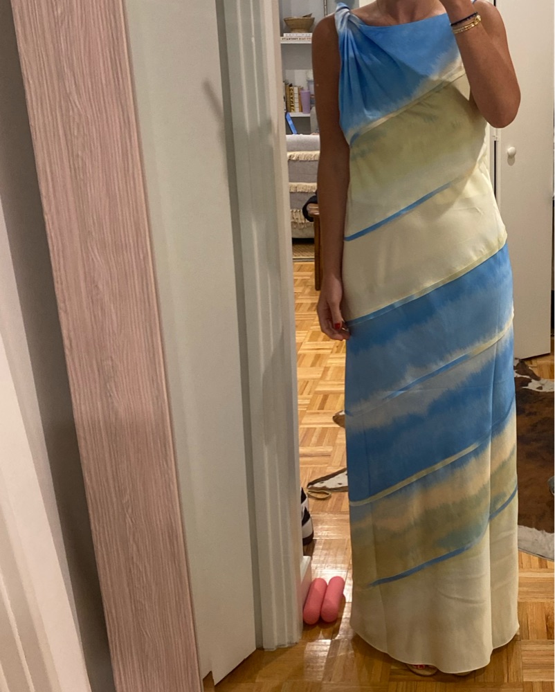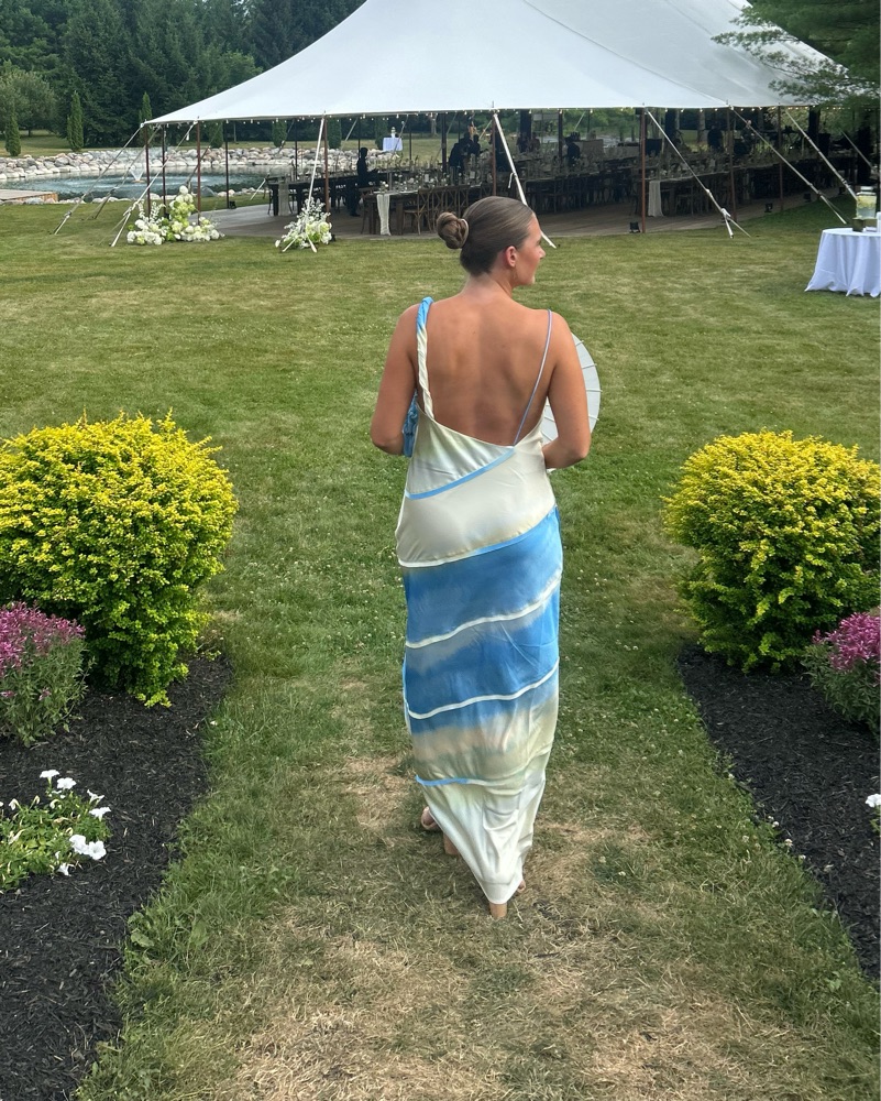 US Size 8 Significant Other maxi dress open back. It’s a blue, green, and butter yellow mix dress. Dry cleaning price is included in the price to rent. Great condition! Only worn twice