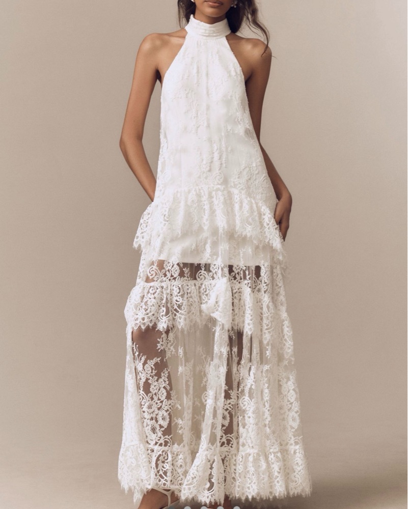 BHLDN Lace Halter Ruffle Peekaboo Maxi