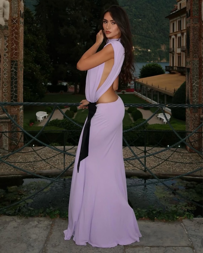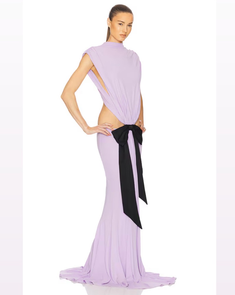 The Constantina Jersey Dress With Bow in Amethyst