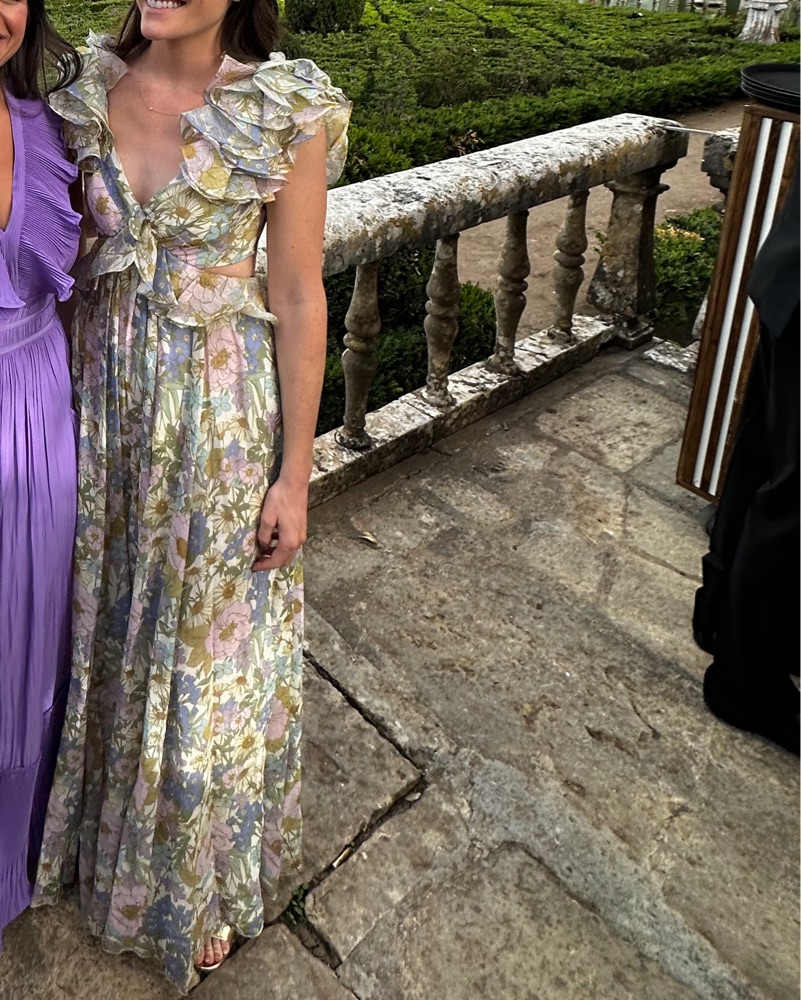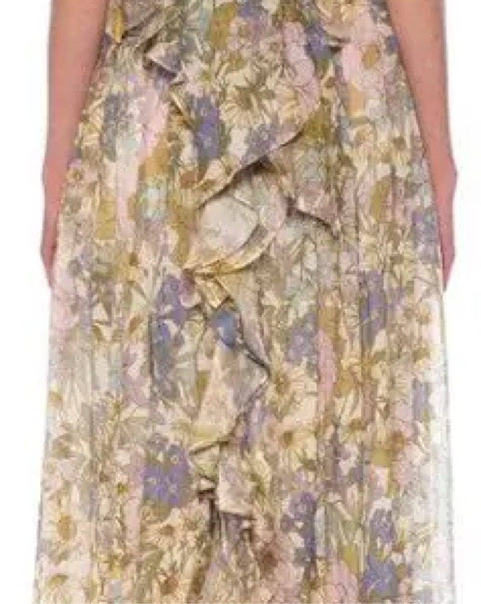 Blue purple and green floral Zimmermann gown with tie back. Was originally a Zimmermann size 0 (a US 2-4)but altered to be closer to a 00 (which fits like a US 0).