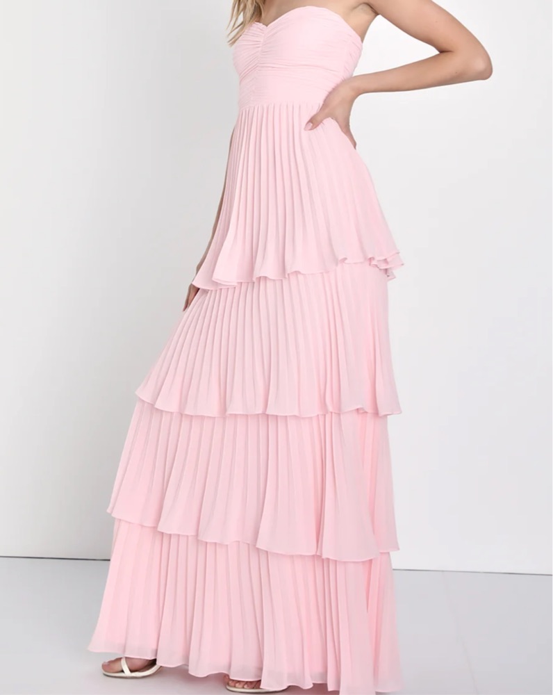 Lulus Seriously Sensational Light Pink Strapless Tiered Maxi Dress