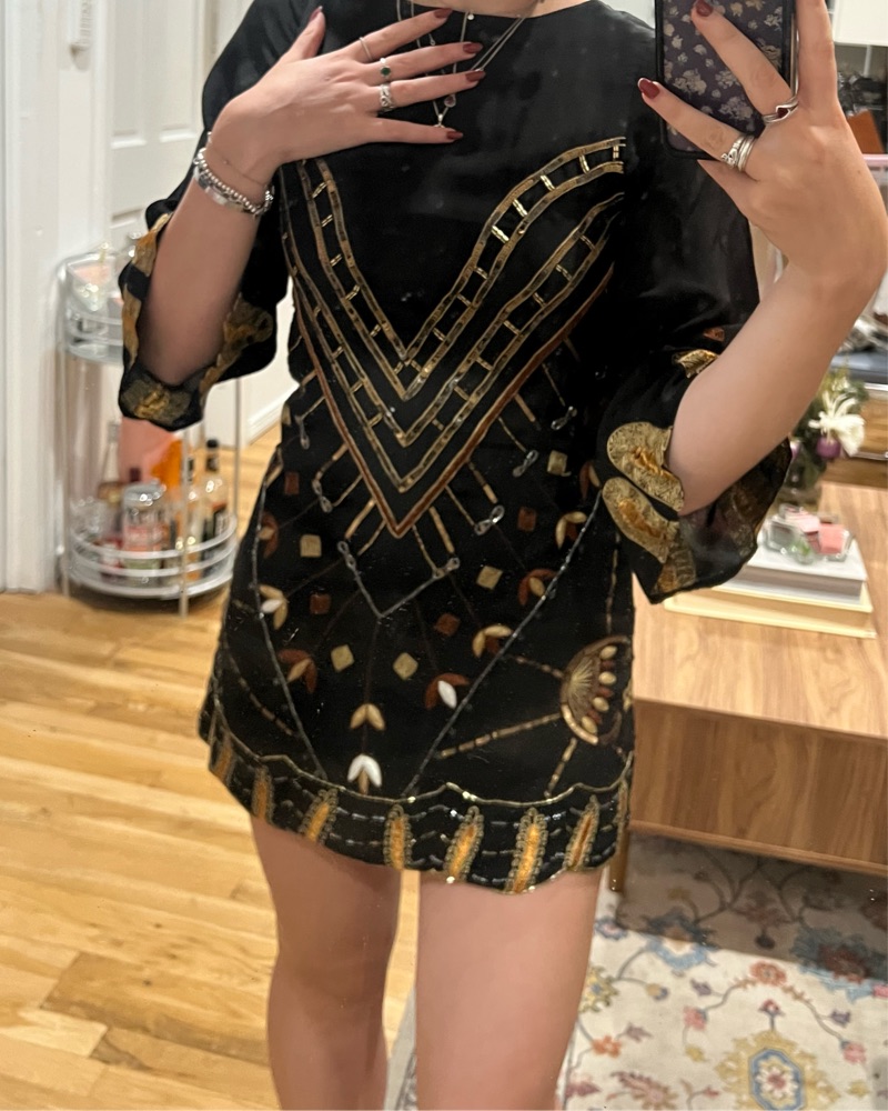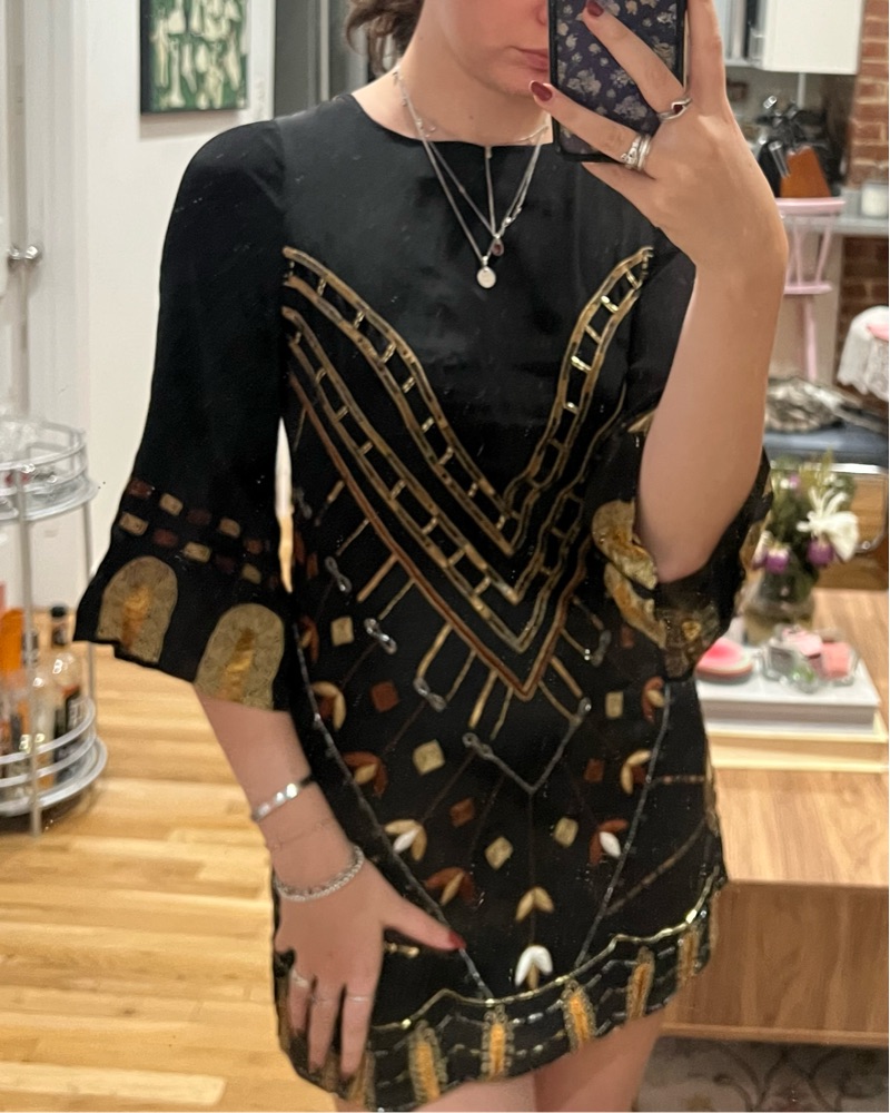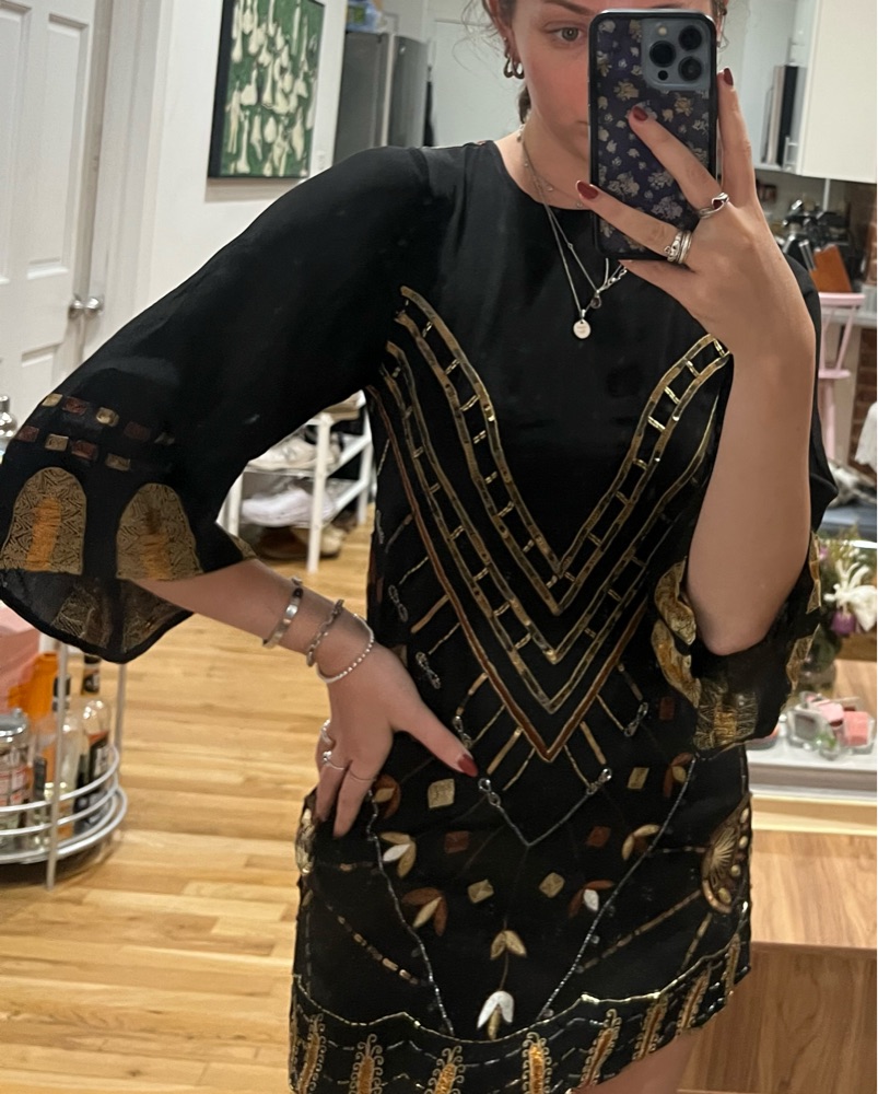 Could be great for a flapper Halloween costume. Got this at a vintage store. Stunning breading and quality. Size small