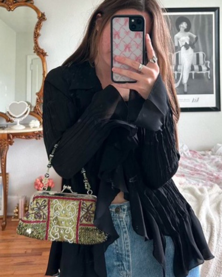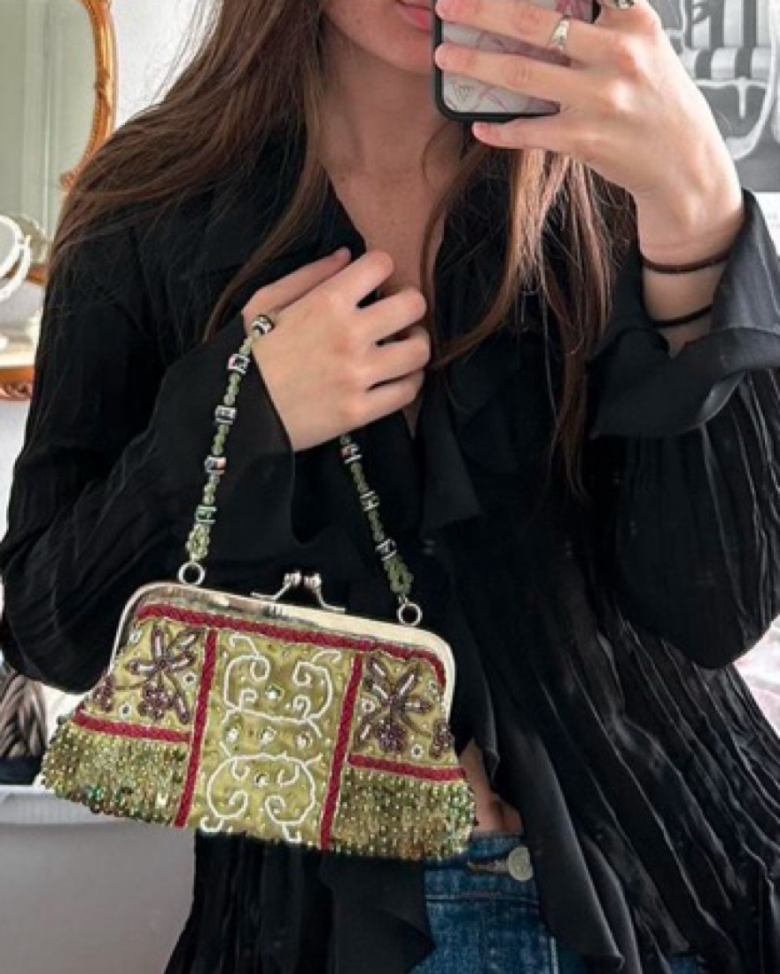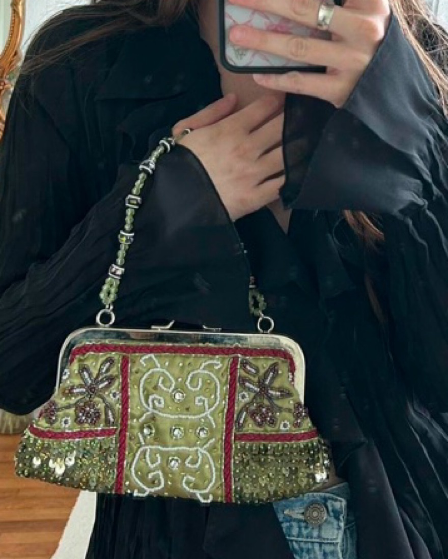 Green Vintage Beaded Mini Bag by Vintage - Pickle