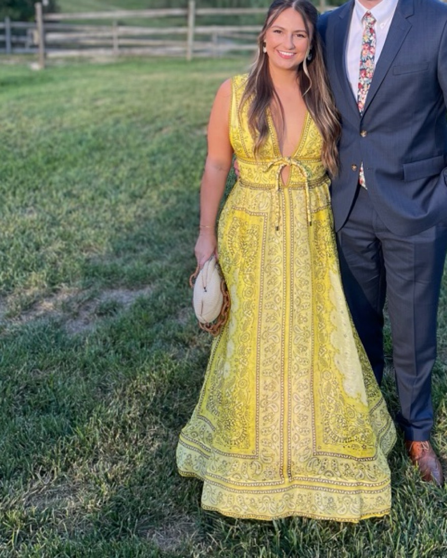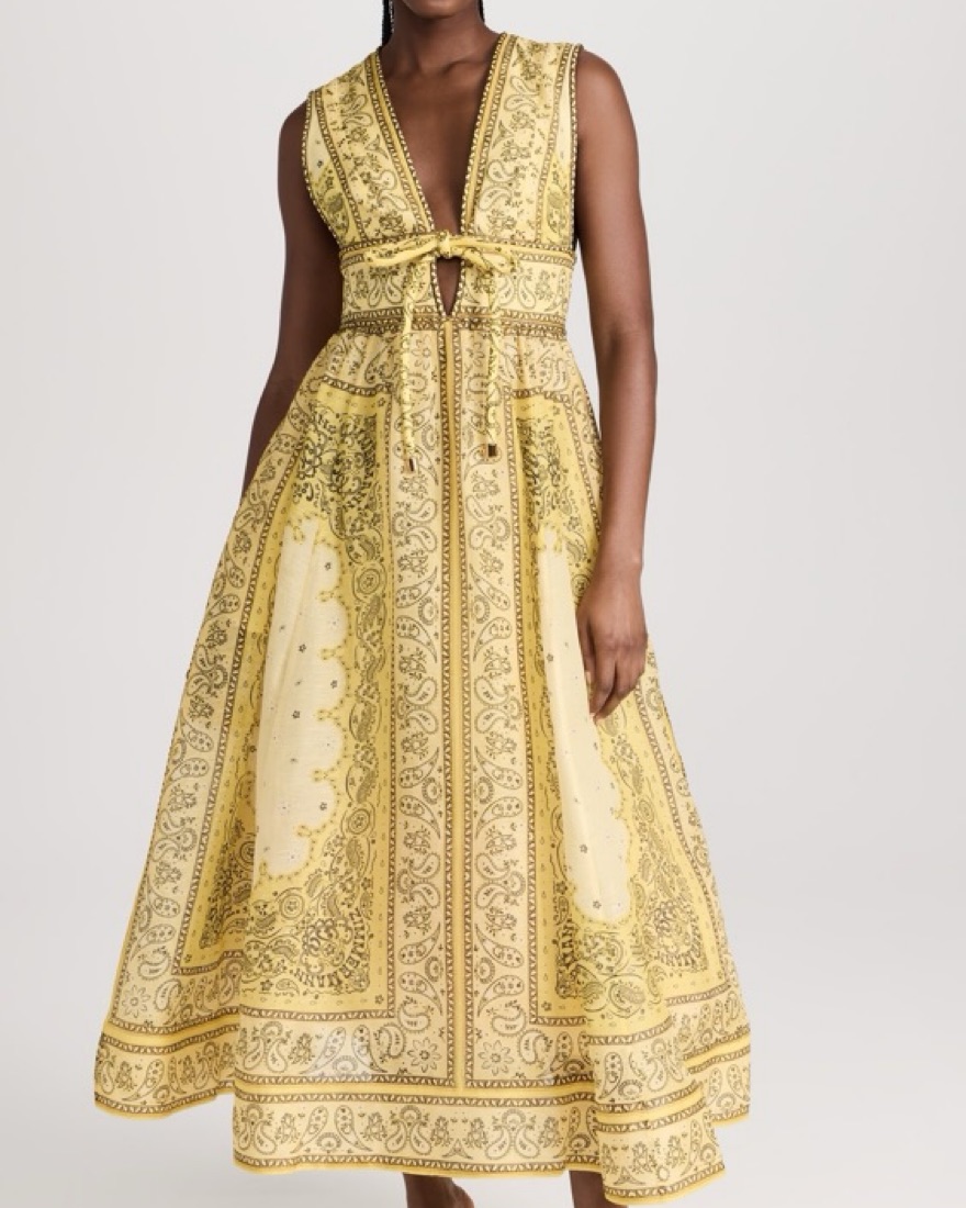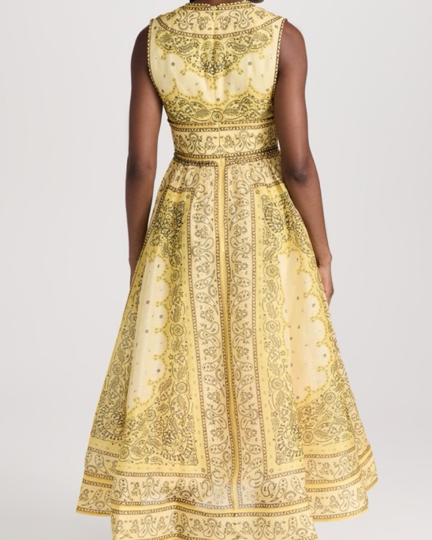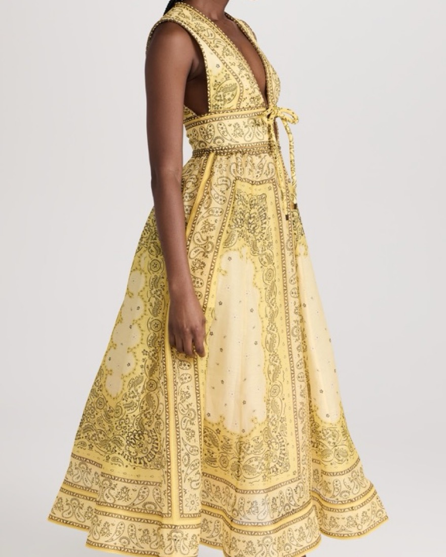 Zimmermann dress with yellow bandana print! Size 3 but altered to be more like a size 2. I’m a true size 6 and it fits perfectly. Please note I added a small stitch to support the weight of the bow, not visible when wearing! Price includes dry cleaning, please return dirty!
