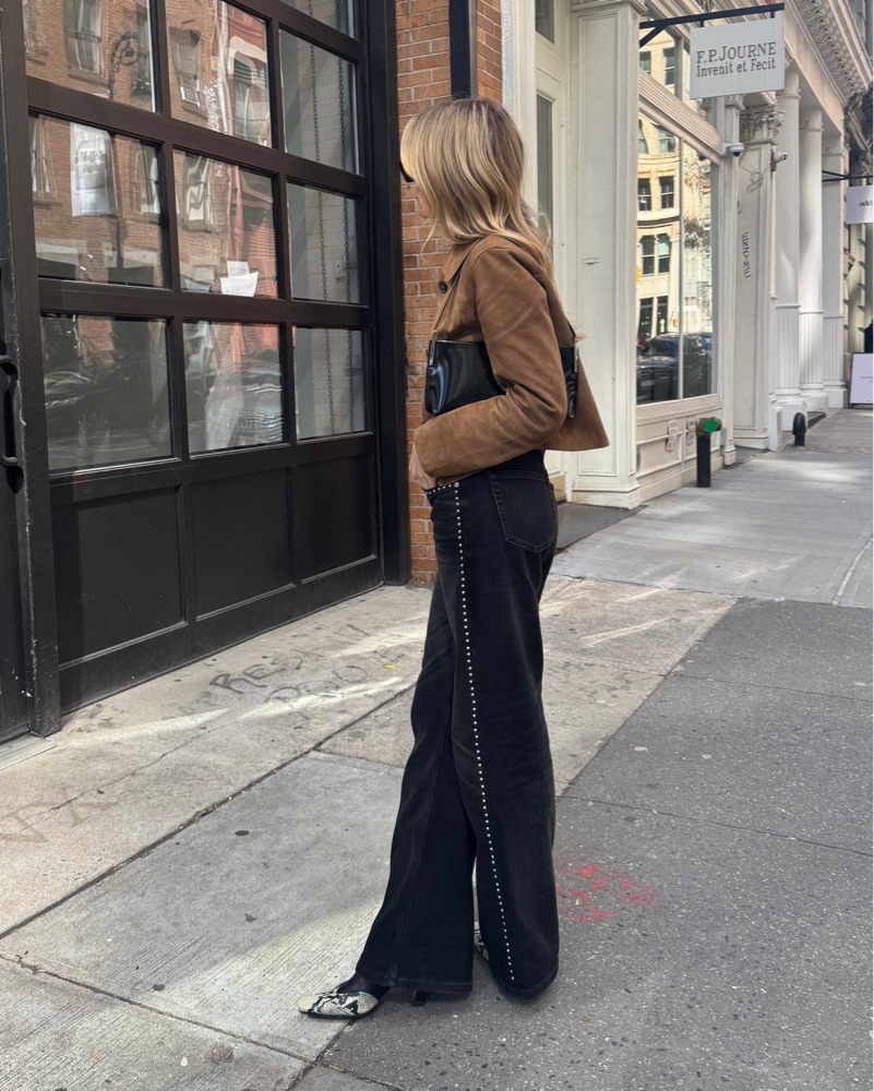 Fit TTS, they would also fit a size 26 – the denim has stretch and I might have been able to go down a size. Wide-leg denim. Inseam 33” I am 5’6.5” with long legs and these are the perfect length with a 3.4” heel. These would be perfect for a country concert or music festival.