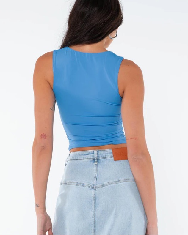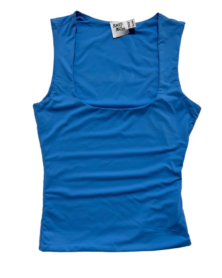 Influencer: Greta Wilson - This sleeveless racerback tank in a bold blue color is a versatile wardrobe staple. Pair it with your favorite jeans or shorts for a casual, comfortable look.