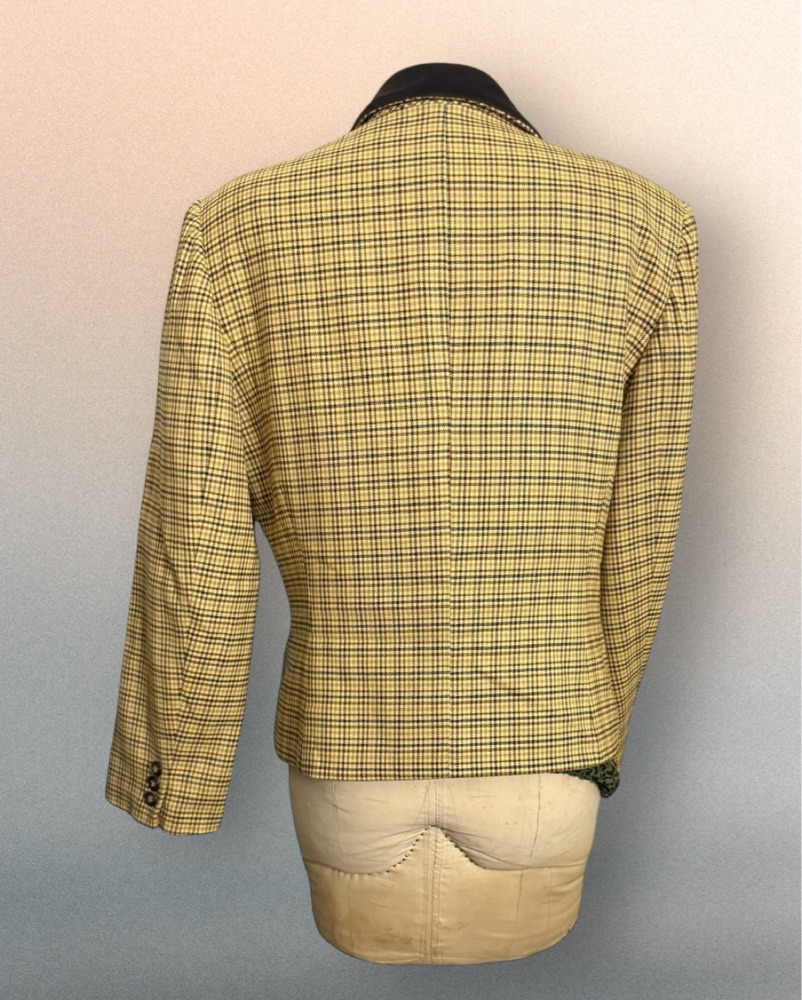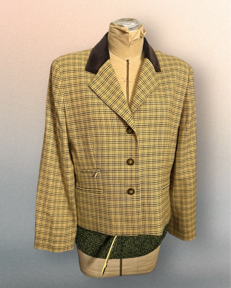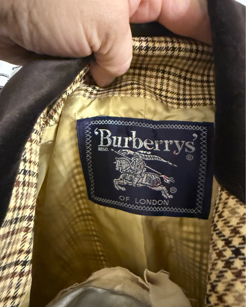 This timeless Burberry jacket is perfect for adding a touch of sophisticated style to any outfit. It features a classic houndstooth pattern that can easily be dressed up or down.