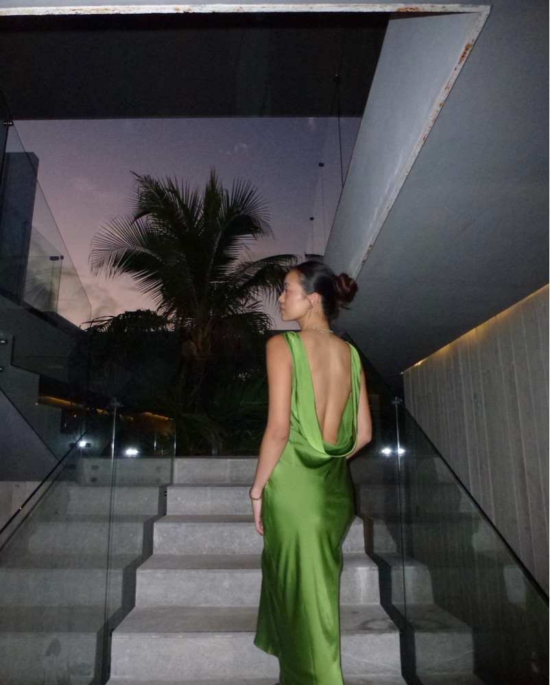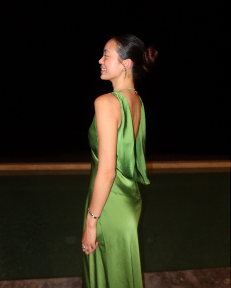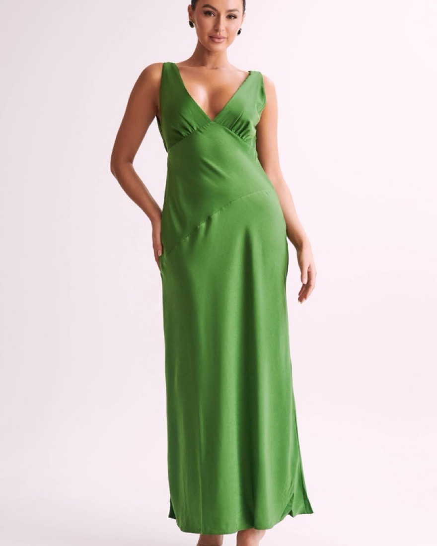 Green Maxi Satin Dress with Back Cowl