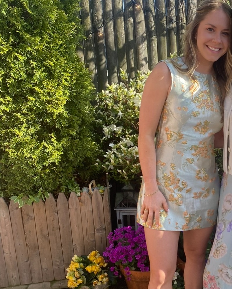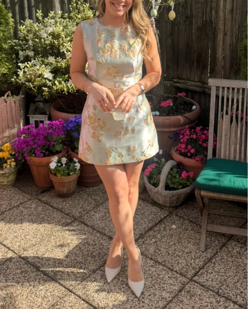Mini green, metallic floral dress