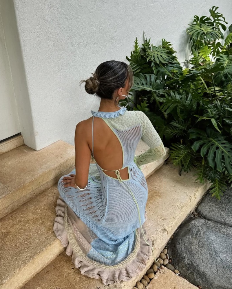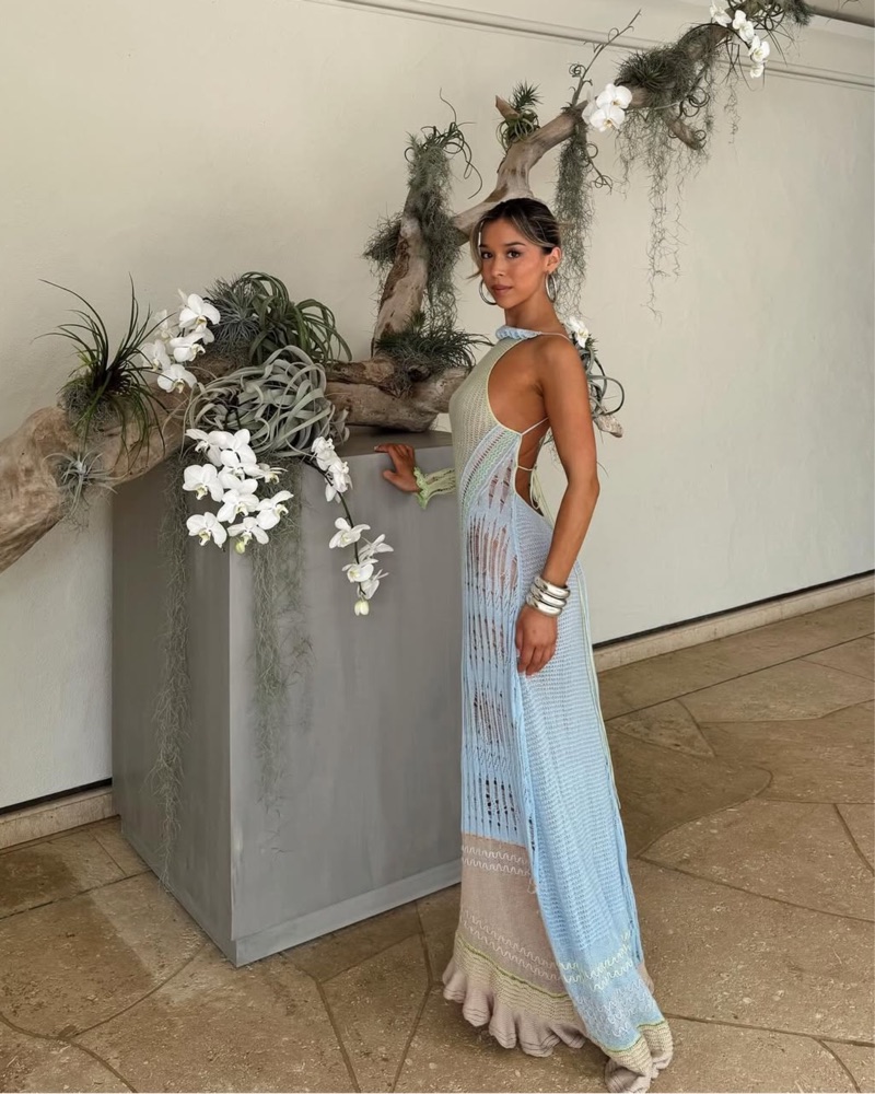 Roberta Einer Bianca dress - crochet, multi-color maxi dress. So stunning and perfect for beach vacations. Available starting in July.