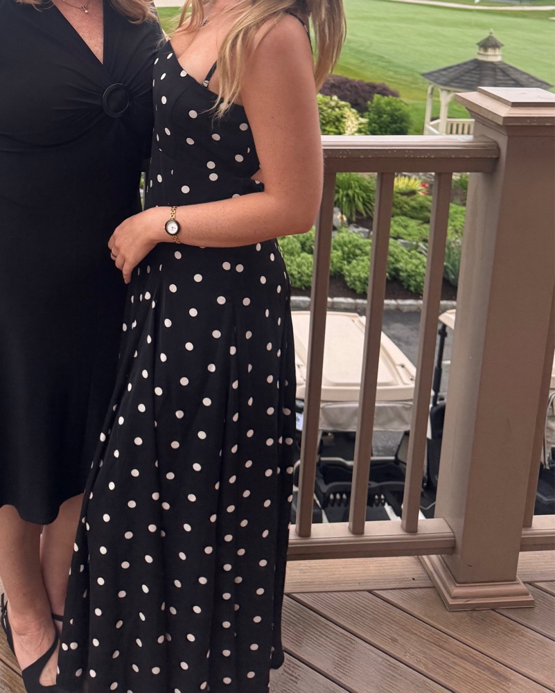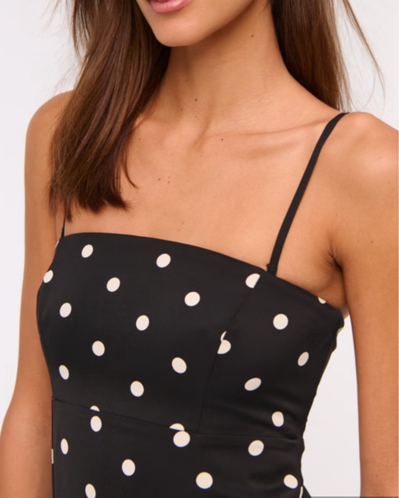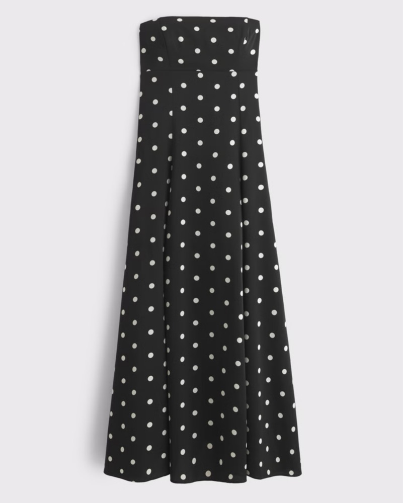 Size Medium, Strapless, Black and White Polka Dot Maxi dress — perfect for vacation, wedding, or other formal events. 🖤🤍 From A&F - Abercrombie