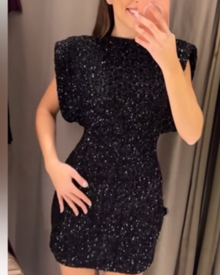 Zara Mini Sequin Dress With Shoulder Pad by Zara - Pickle