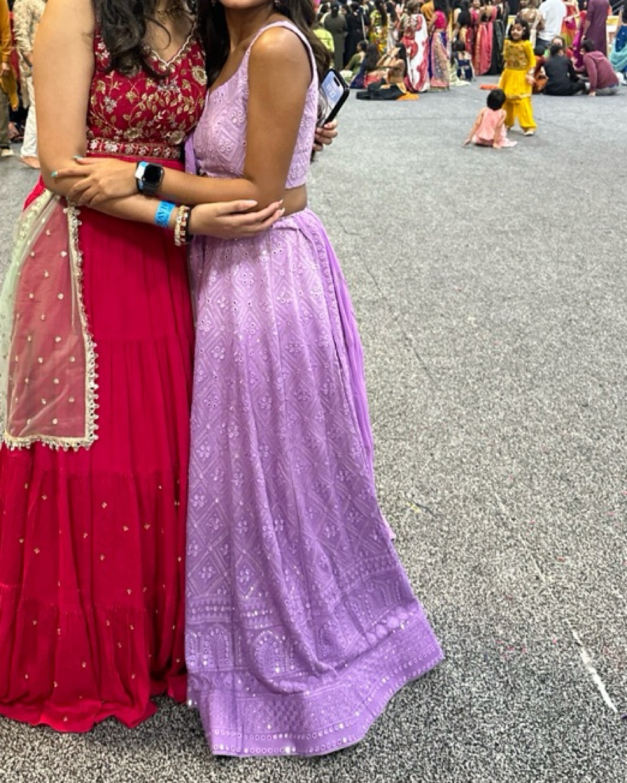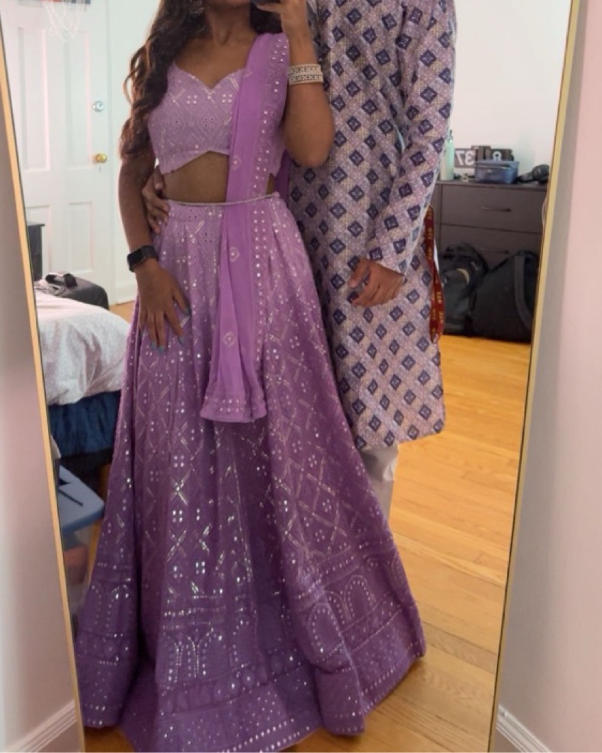 Size xs, bust 32. This stunning lavender lehenga set is perfect for a festive occasion. Great for Indian wedding. PLEASE BE CAREFUL! The intricate embroidery and sequin detailing add a touch of glamour. If you need to match with someone, I’d be happy to give the matching kurta(size 38).
